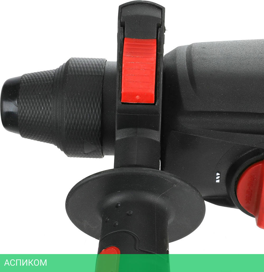дополнительная рукоятка, ограничитель глубины сверления, три бура с хвостовиком, плоское зубило, смазка и пластиковый кейс.