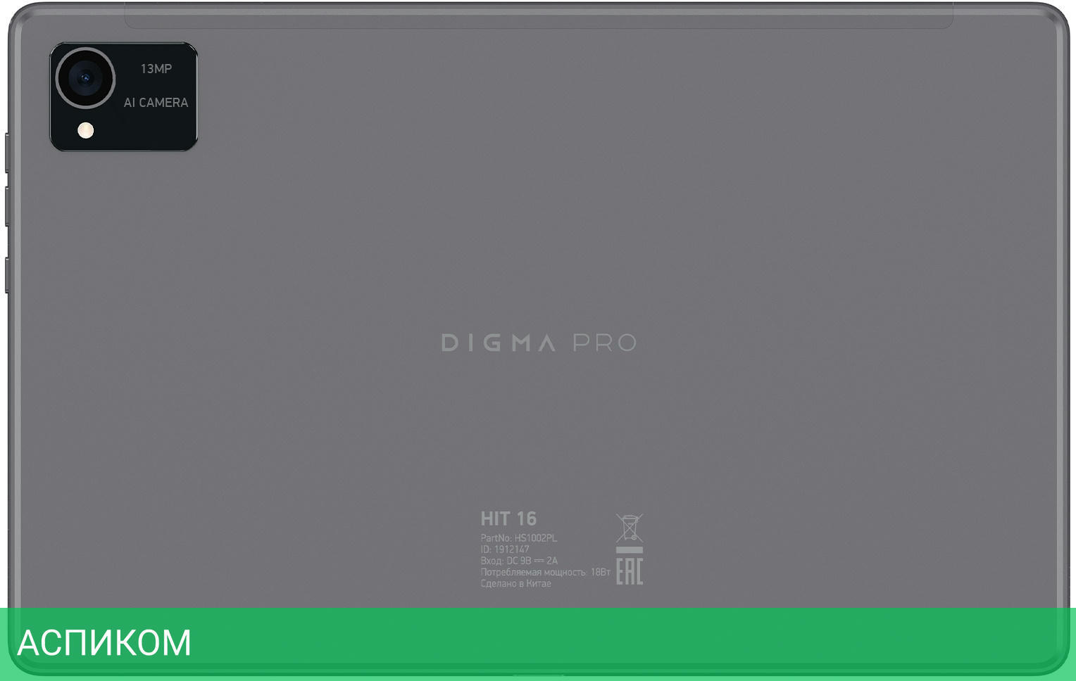 Планшет Digma Pro HIT 16 T616 2.0 8Gb/256Gb серый (HS1002PL)/Android 13/10.4″/2000x1200/2GHz/8GB/256GB/microSD/7000
