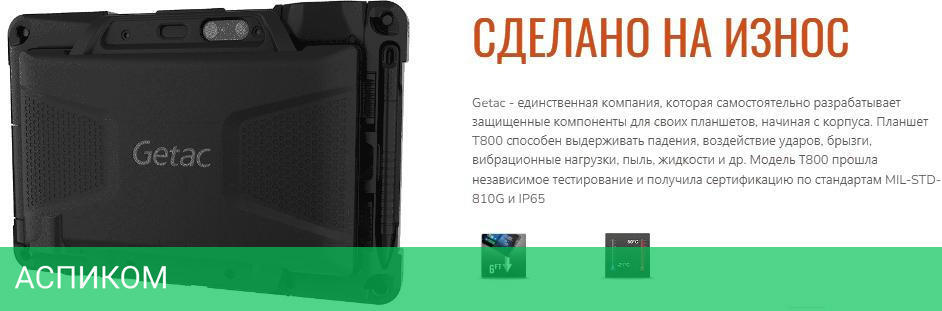 Планшет Getac T800G2-B X7-Z8750 (TD98Y2DH53XX)/Windows 10 Pro/8.1″/TFT/1280x800/Intel Atom x7-Z8750/1.6GHz/4GB/128GB/BT/Wi-Fi/4200
