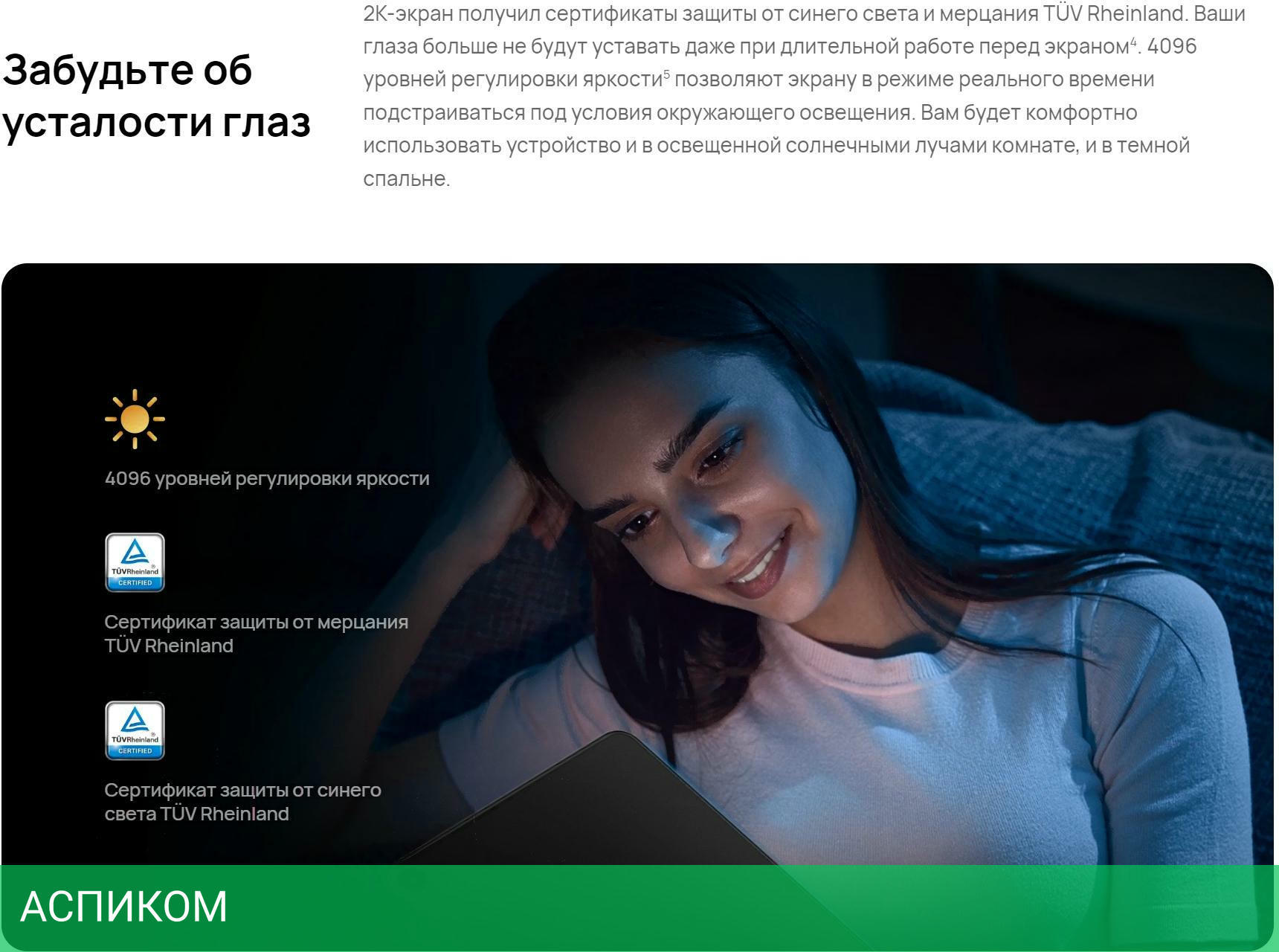 Планшет (со встроенной батареей), зарядное устройство, кабель Type-C, краткое руководство пользователя