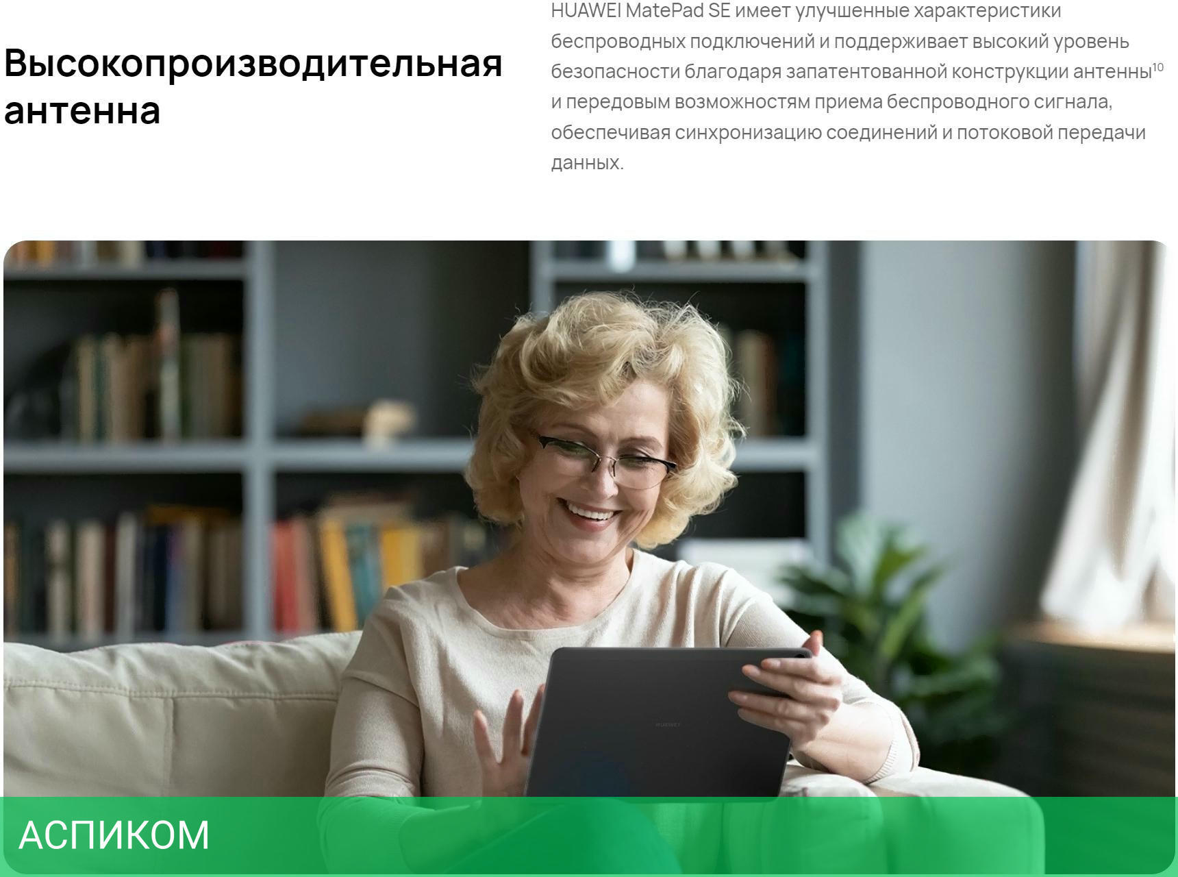 Планшет Huawei MatePad SE 4GB/128GB LTE AGS5-L09 Graphite Black (53013NVG)/HarmonyOS/10.4″/IPS/2000x1200/Qualcomm Snapdragon 680/2.4GHz/4GB/128GB/Cam/GPS/BT/Wi-Fi/2G, 3G, 4G (LTE)/microSD, microSDHC, microSDXC/5100 mAh/черный
