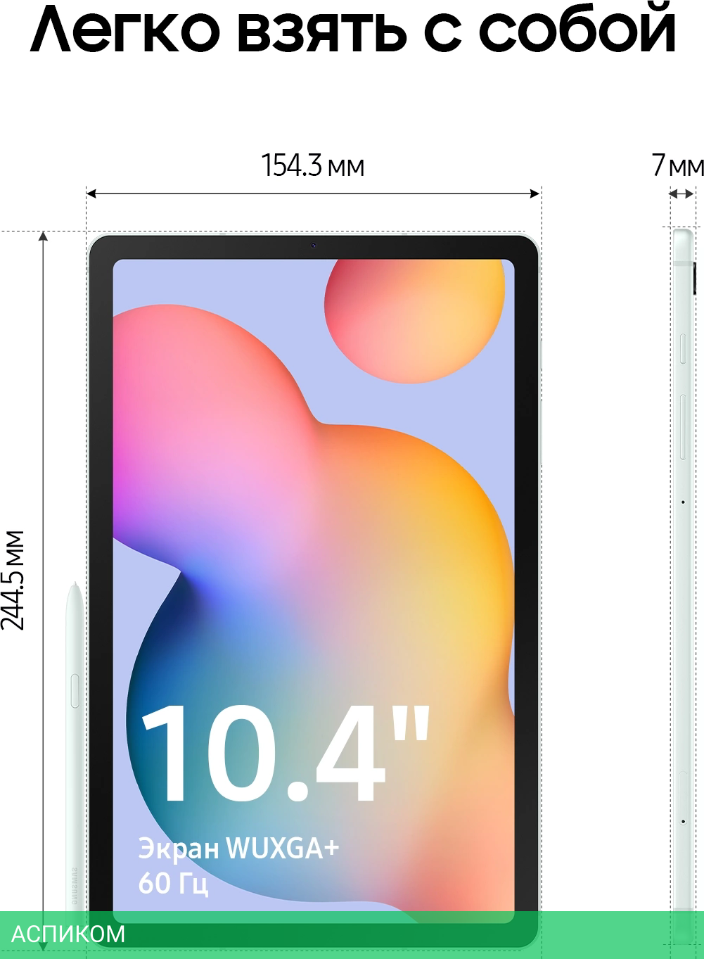Планшет Samsung Galaxy Tab S6 Lite SM-P620 4/64Gb мятный (SM-P620NLGACAU)/Android 14/10.4″/2000x1200/2.4GHz/4GB/64GB/microSD/7040