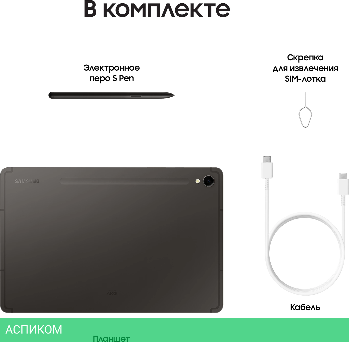 Планшет, электронное перо S Pen, кабель Type-C (m) - Type-C (m), скрепка для извлечения SIM-лотка