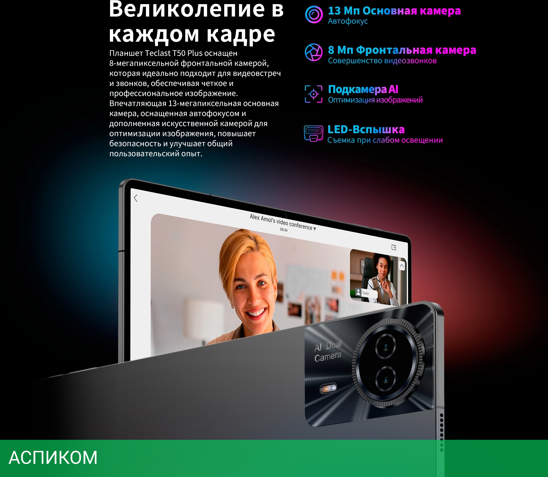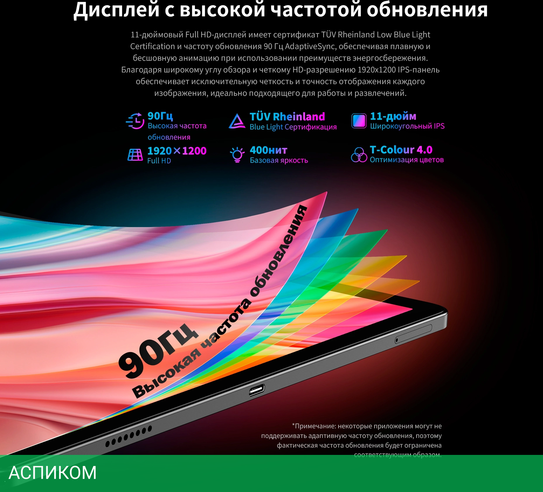 Планшет Teclast T50Plus Tiger T620 6/256Gb серый/Android 14/10.95″/1920x1200/2GHz/6GB/256GB/microSD/8000 mAh/серый