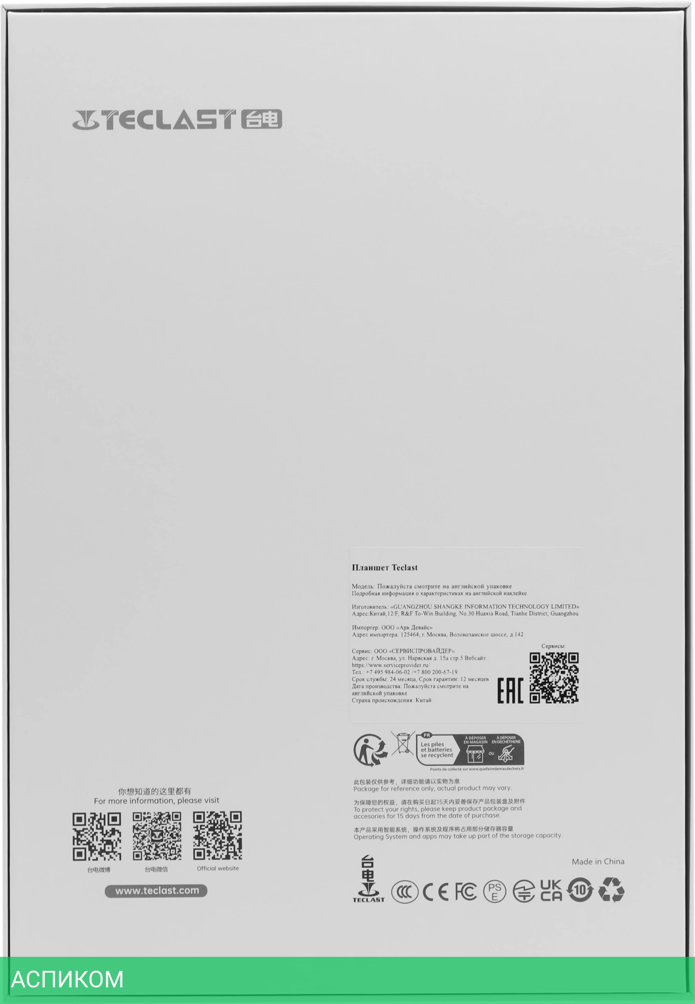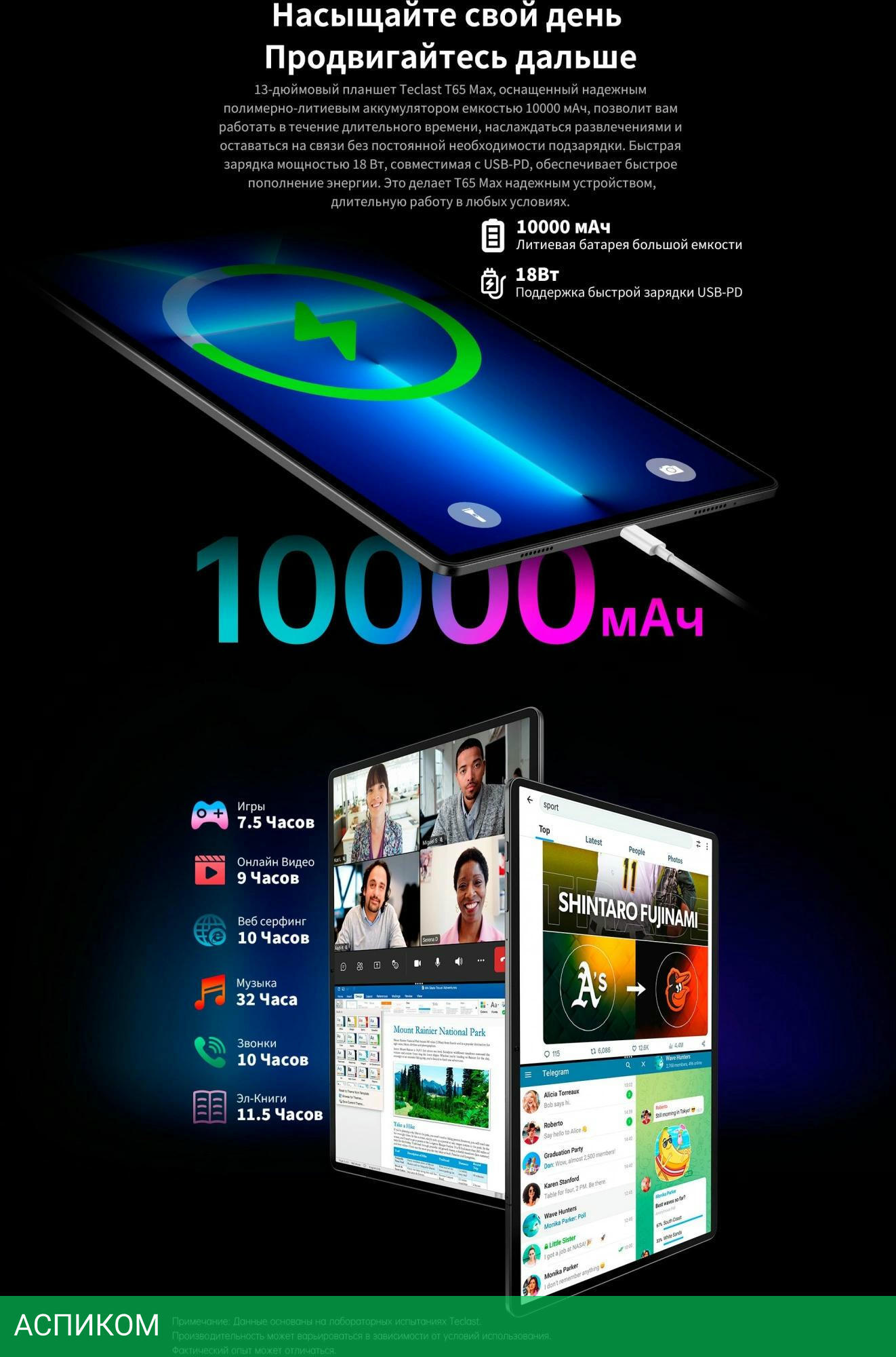Планшет Teclast T65Max G99 8/256Gb серебристый/Android 14/12.95″/1920x1200/2GHz/8GB/256GB/microSD/10000 mAh/серебристый