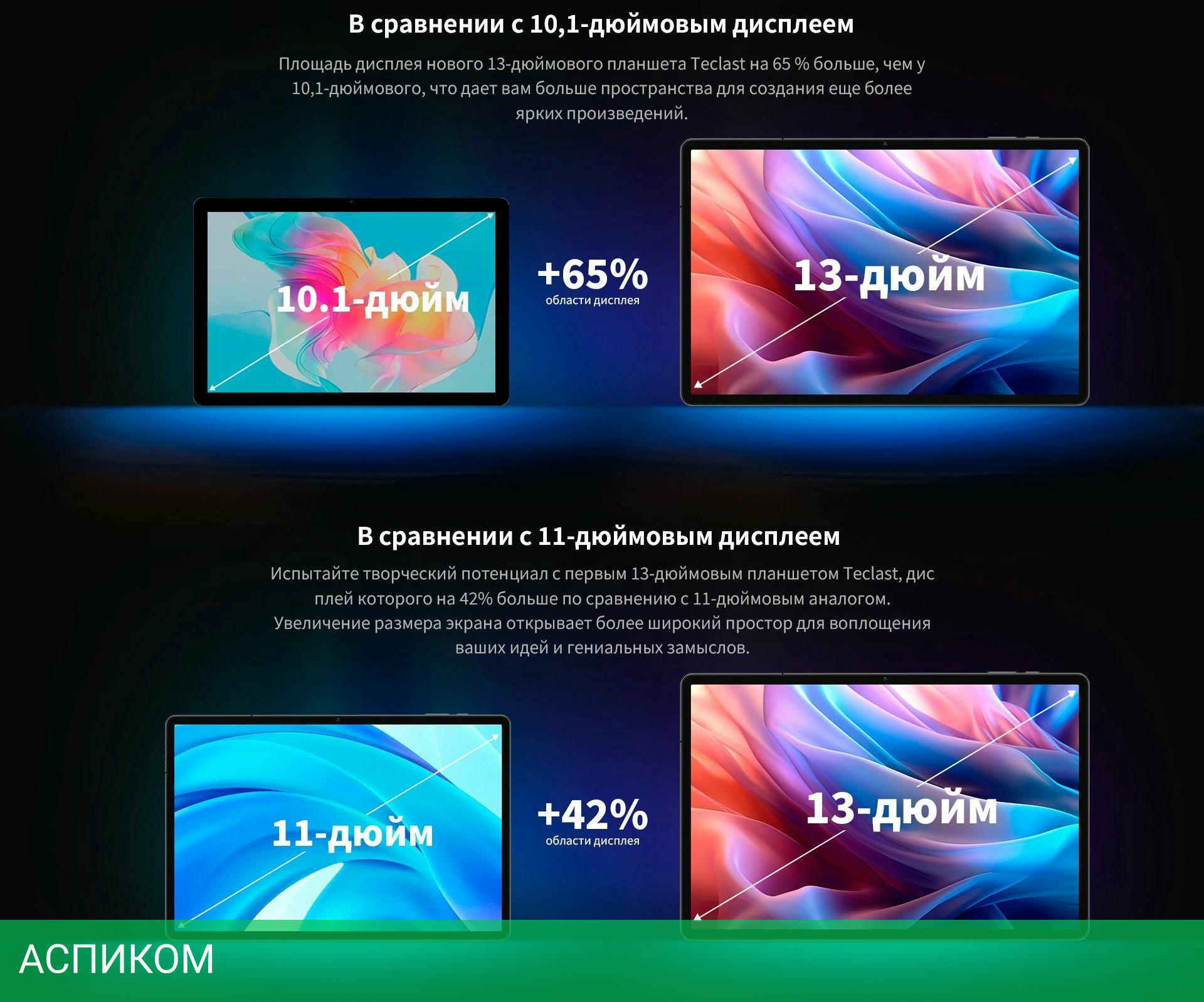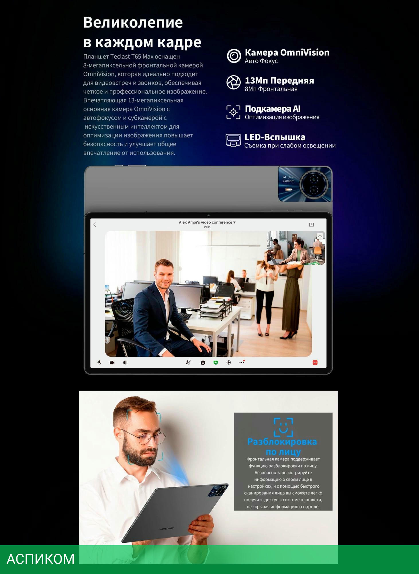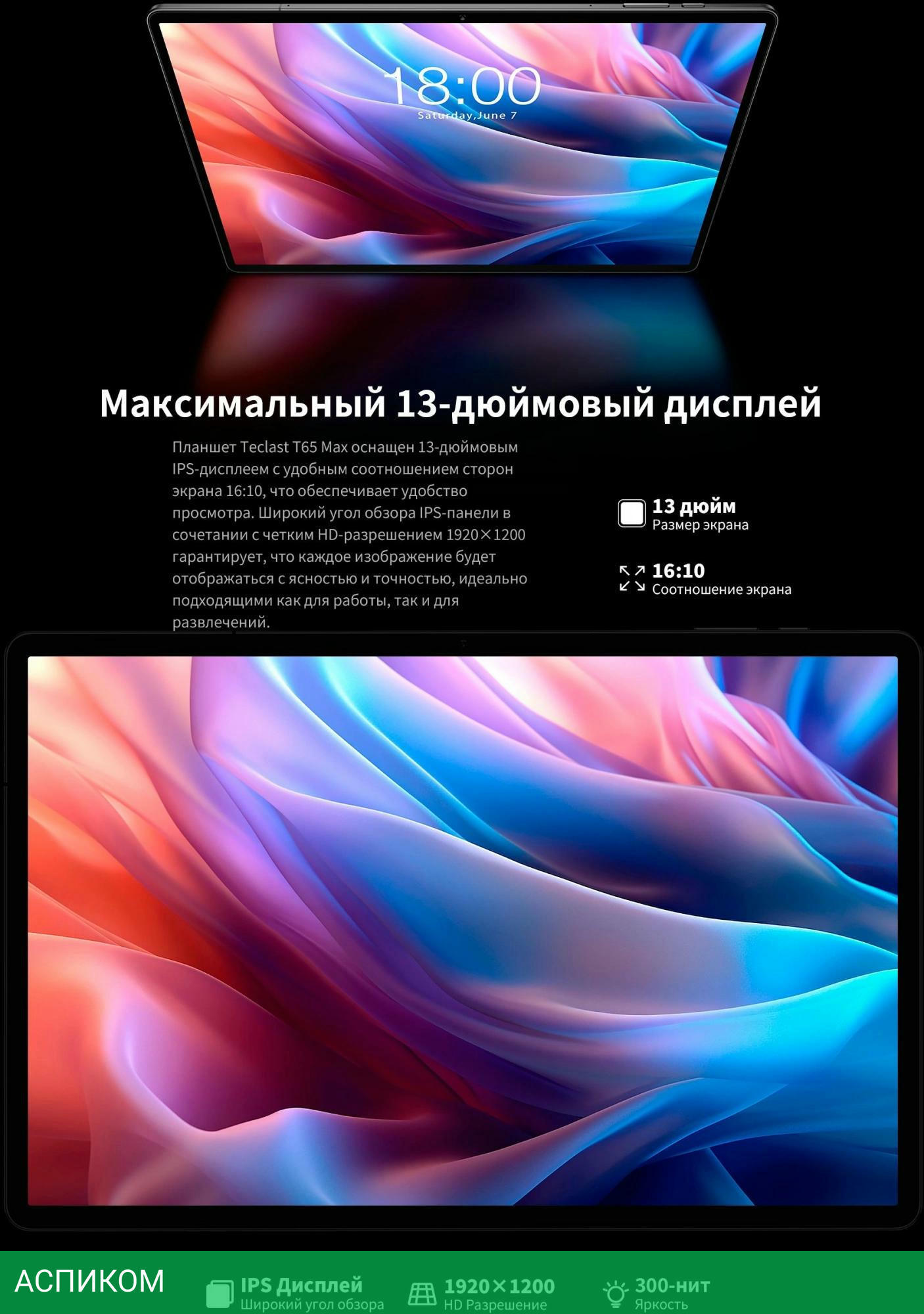 Планшет Teclast T65Max G99 8/256Gb серебристый/Android 14/12.95″/1920x1200/2GHz/8GB/256GB/microSD/10000