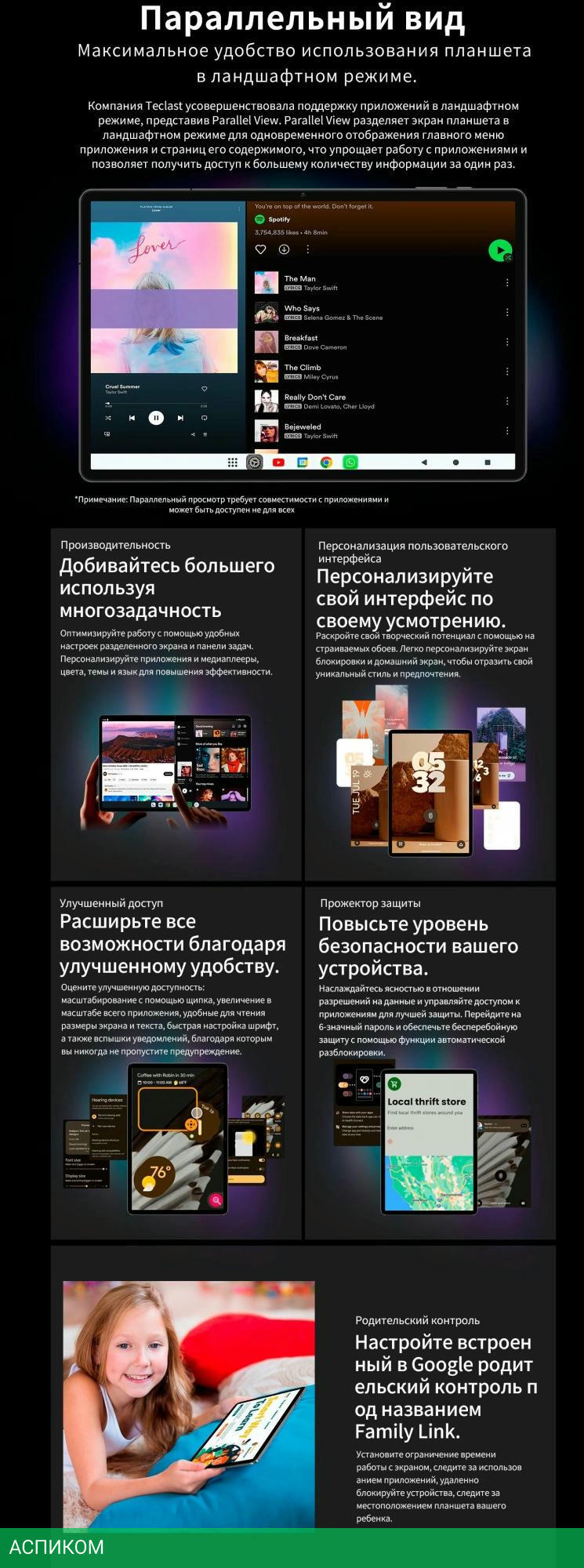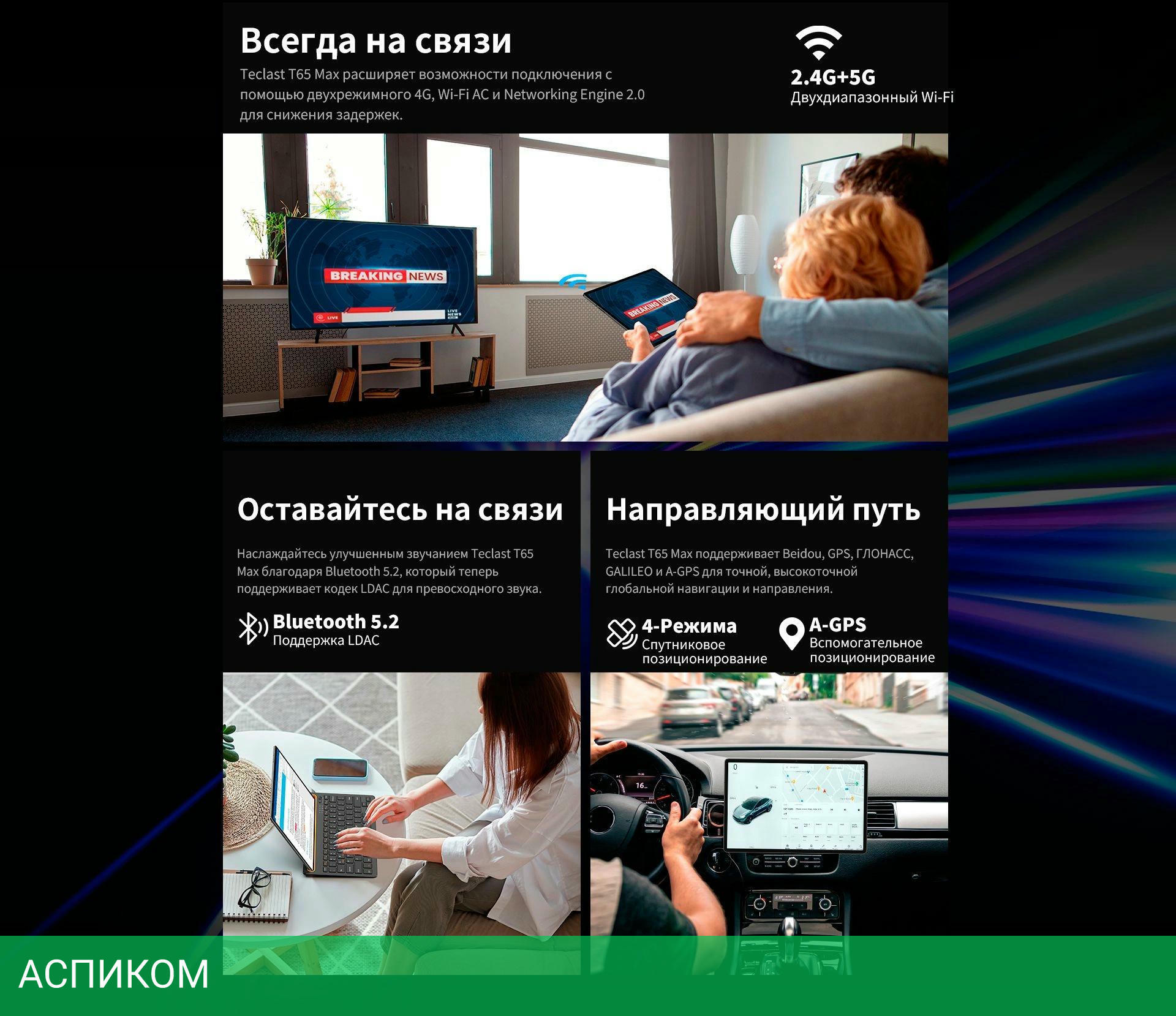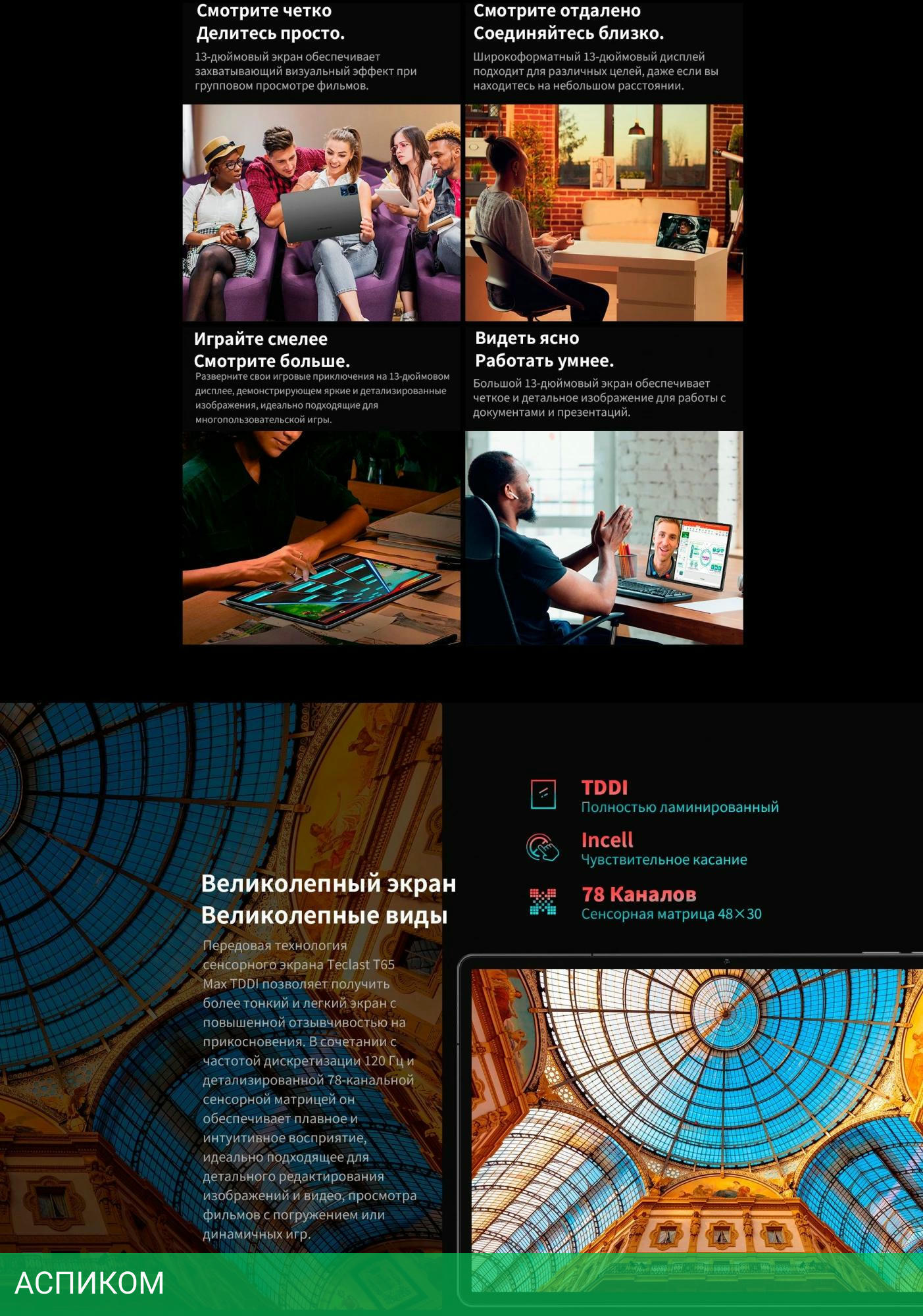 Планшет Teclast T65Max G99 8/256Gb серебристый/Android 14/12.95″/1920x1200/2GHz/8GB/256GB/microSD/10000