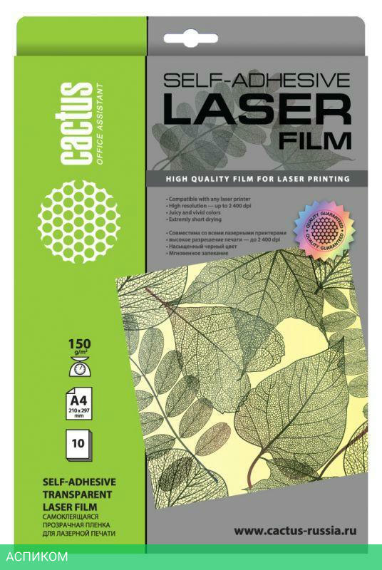 самоклеящаяся пленка / листы / лазерная печать / прозрачная / A4 / 10