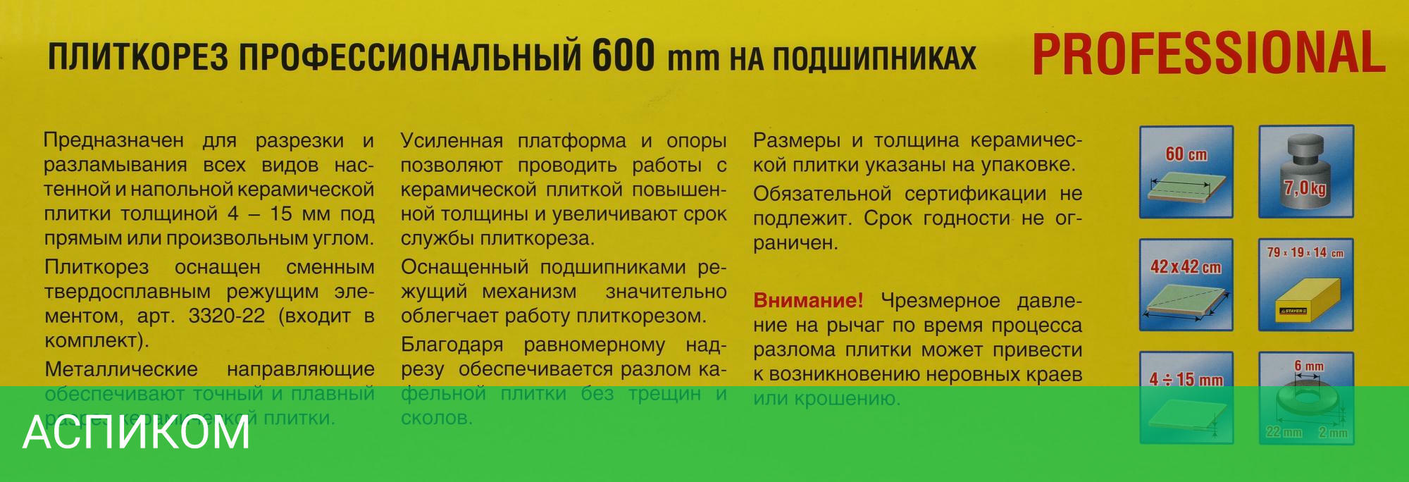 Предназначен для разрезки и разламывания всех видов настенной и напольной керамической плитки толщиной 4-15 мм. под прямым или произвольным углом.