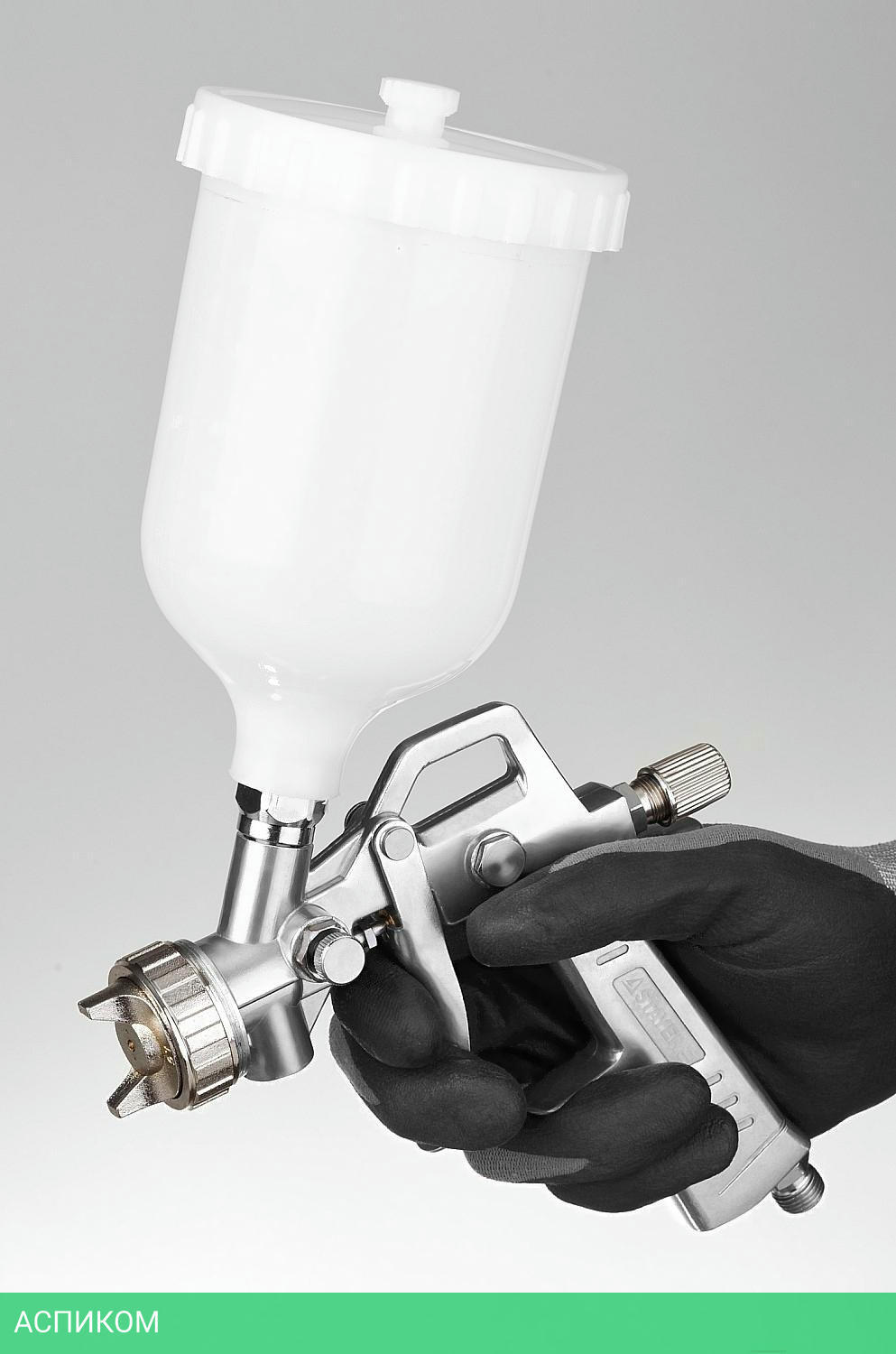 фильтр (пластиковый), переходник (1/4" (F) — Рапид (быстросъем)), пневмокраскопульт, бачок, инструмент для обслуживания краскопульта