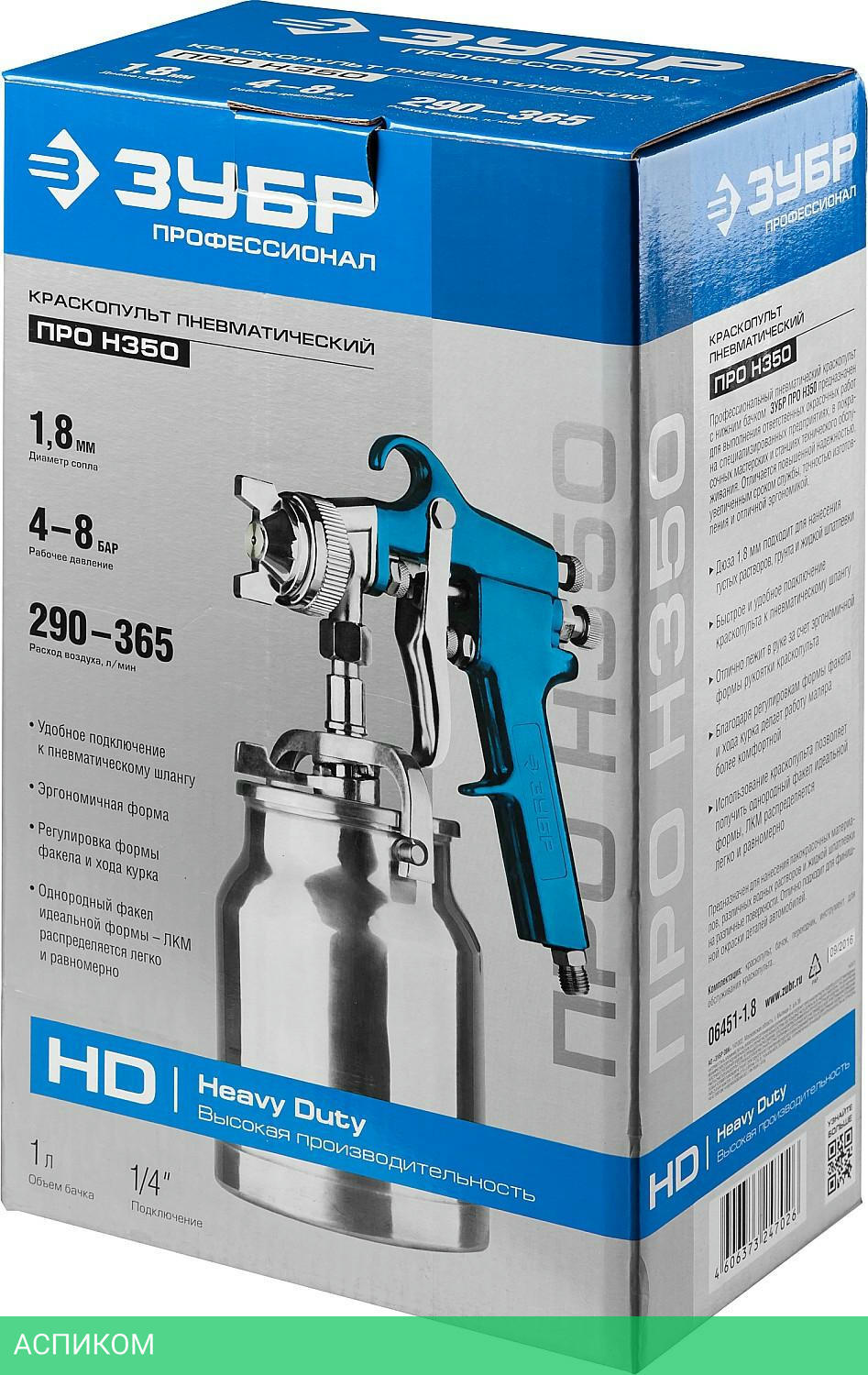краскопульт (краскораспылитель) / HD / 365.0 / 8.0 / 1.8 / 1000.0 / нижняя / 1.06