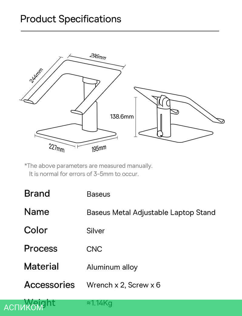 подставка / 17.3 / металл / нет / 0 / да / нет / серебристый