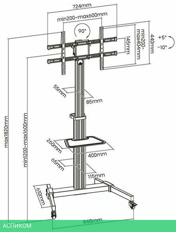 для телевизора / белый / напольный / 37.0 / 86.0 / 10 / 90.0