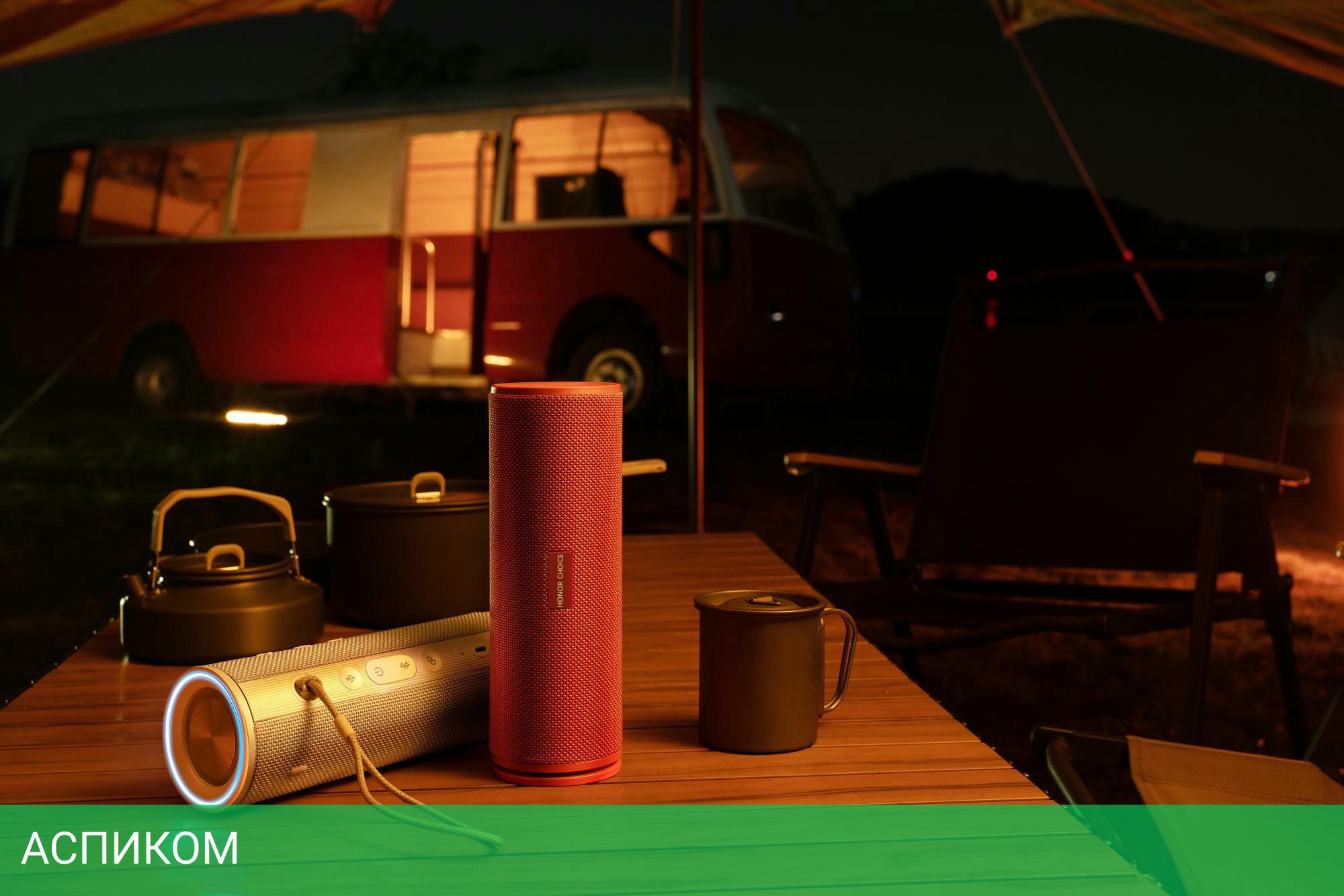 Защита от пыли и воды IP67, Динамик поддерживает 3 звуковых эффекта, Круглая внешняя подсветка, Возможность создания стереопары и подключения до 100 колонок.