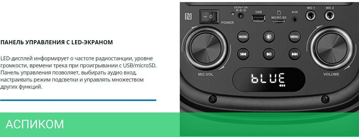 Bluetooth колонка / черный / от аккумулятора; от сети / 100.0 / нет / да / microSD / нет / пластик