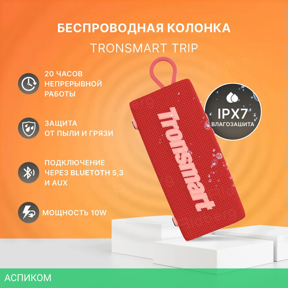 Bluetooth колонка / от аккумулятора / 10.0 / нет / красный / 5.3 / нет / нет / IPX7 / ткань