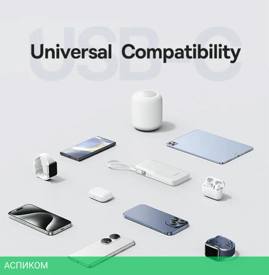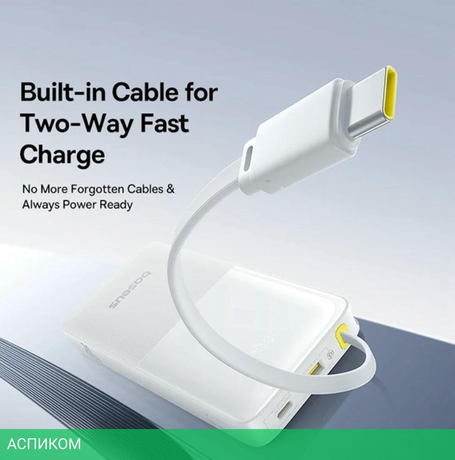 Портативное зарядное устройство Baseus Bipow 2 Moon White (P10077101213-01)/20000mAh/20W/PD/3A/USB Type-A/USB Type-C/пластик, металл/белый