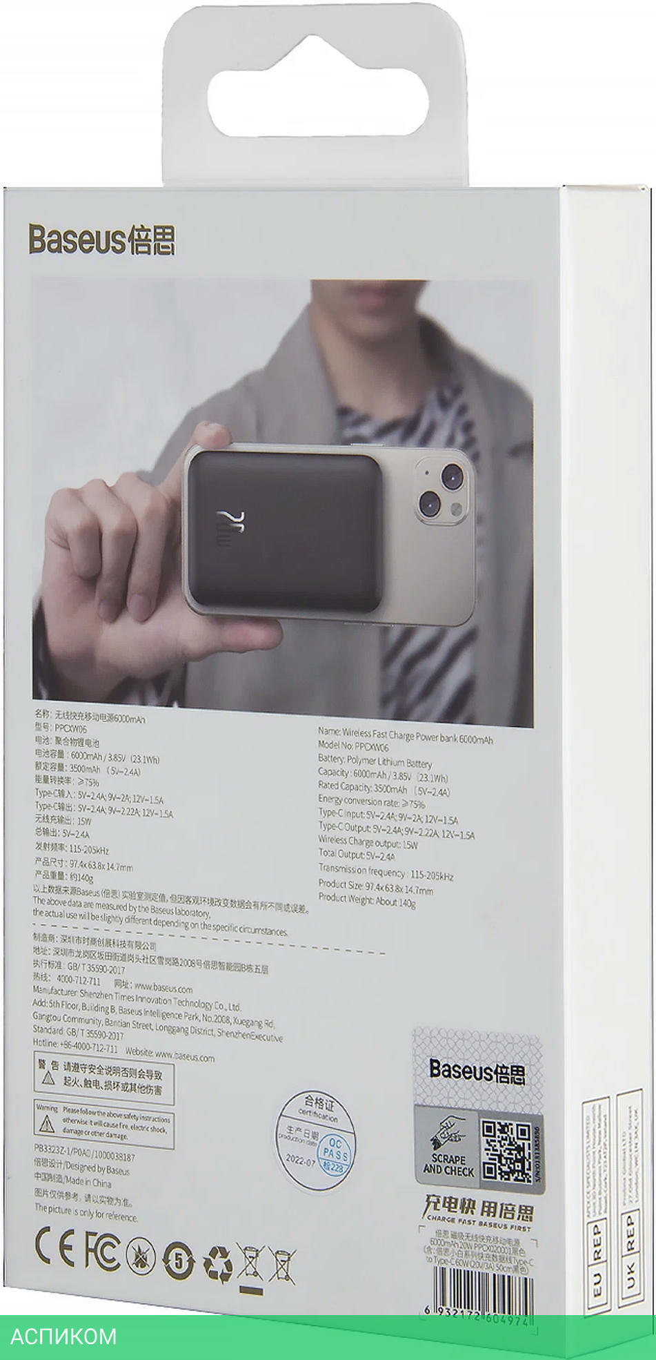 Портативное зарядное устройство Baseus Magnetic Mini Air PPCXM06A Black (P10059002113-00)/6000mAh/20W/2.4A/USB Type-C/пластик/черный