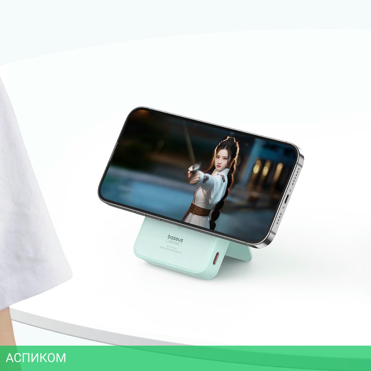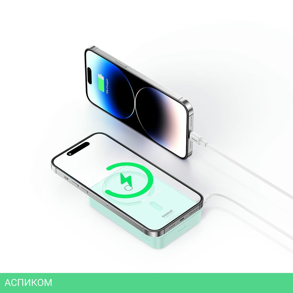 Портативное зарядное устройство Baseus MagPro Peppermint Blue (P10064101333-00)/5000mAh/20W/PD/QC 3.0/2.4A/USB Type-C/пластик/голубой