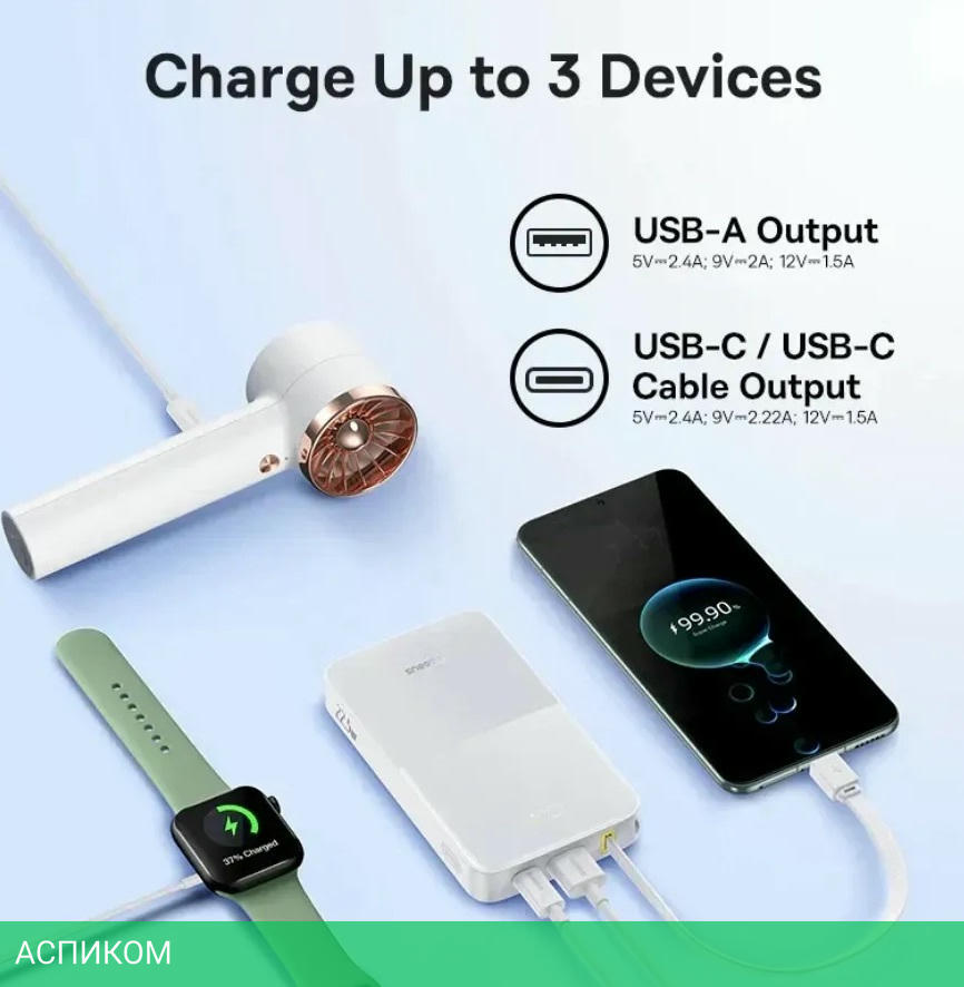 Портативное зарядное устройство Baseus PPBD2-1W20 Moon White (E0027700)/20000mAh/PD/QC 3.0/3A/пластик, металл/белый