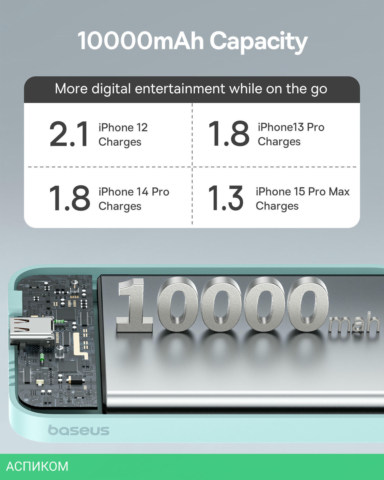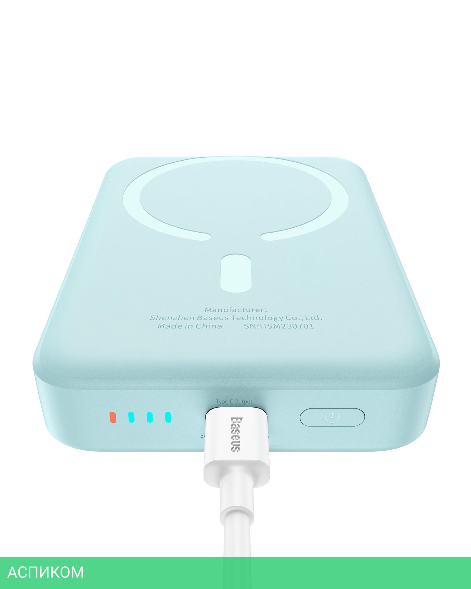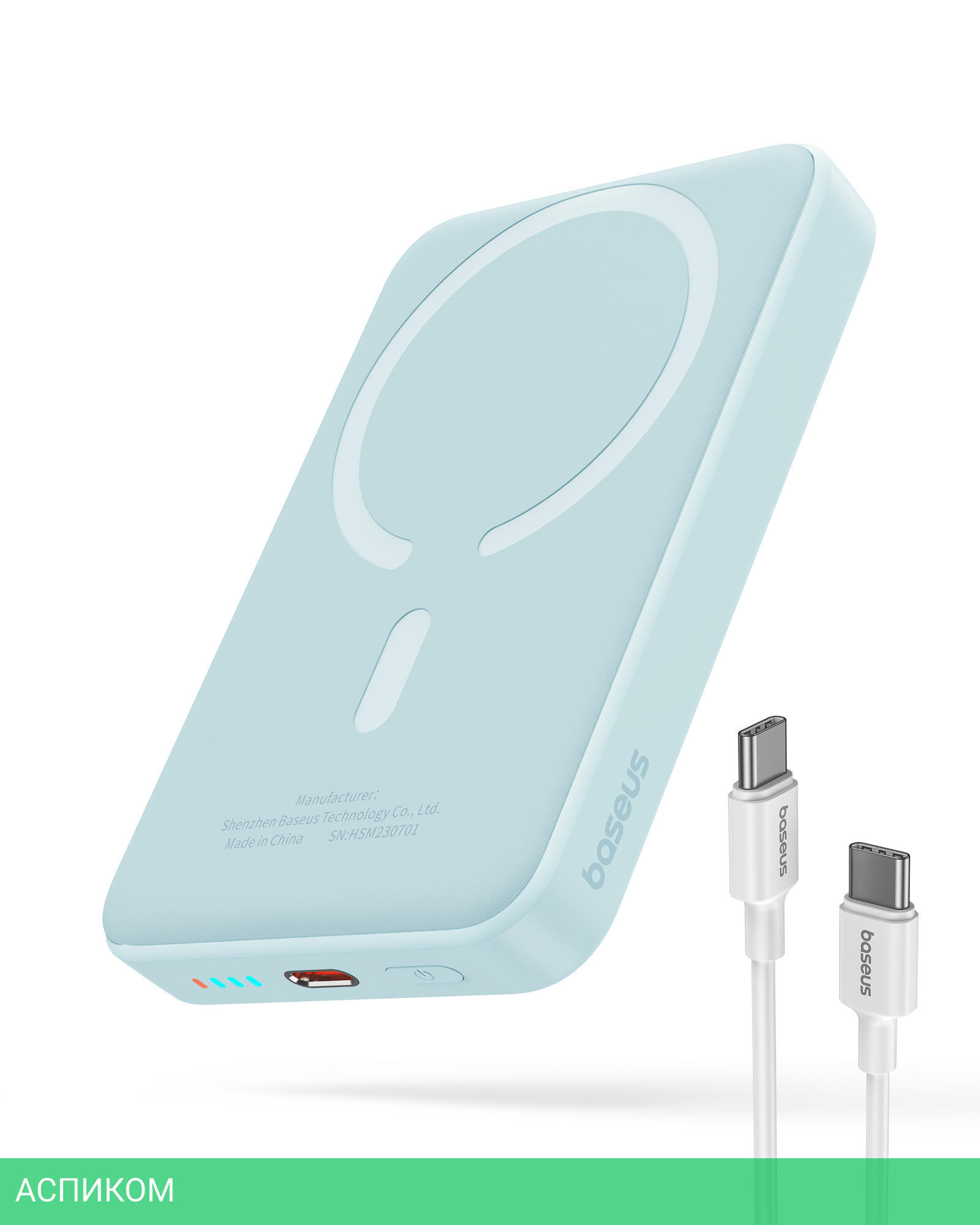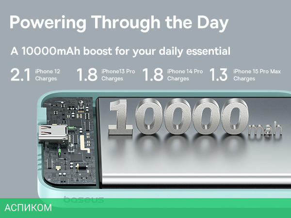 Портативное зарядное устройство Baseus PPCXM10A (P10059001313-00)/10000mAh/15W/FastCharge/2.4A/USB Type-C/пластик/бирюзовый