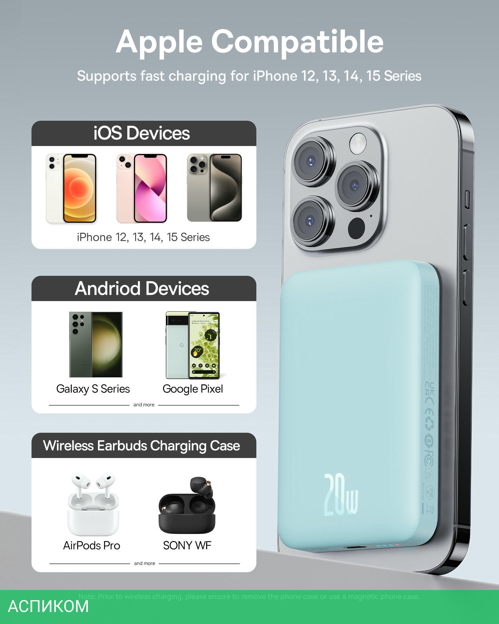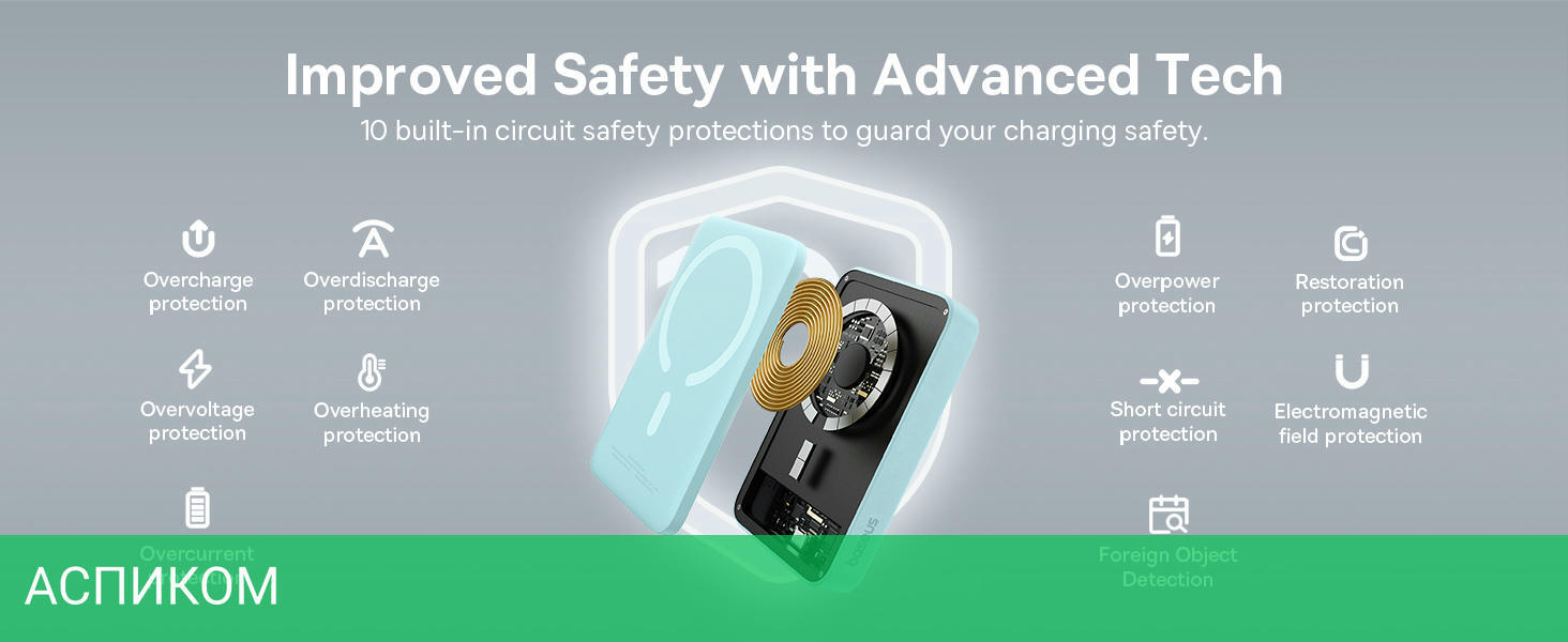 беспроводная зарядка и магнитное крепление делают использование очень удобным; компактный и легкий дизайн делает его отличным выбором для путешествий и повседневного использования; технология быстрой зарядки обеспечивает быструю подзарядку ваших устройств