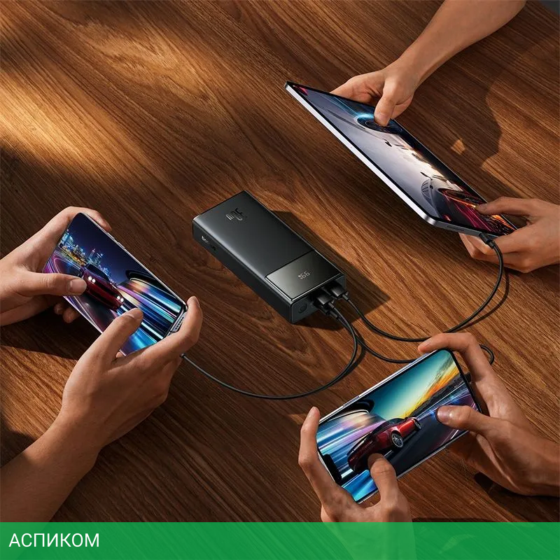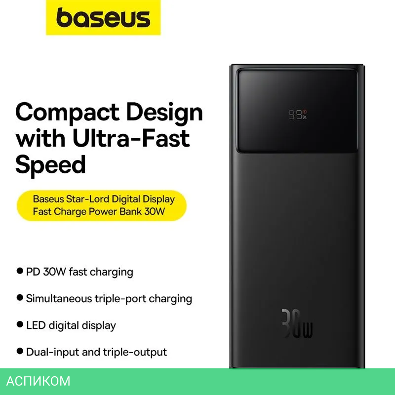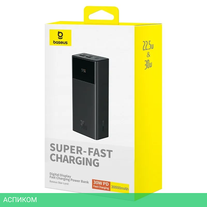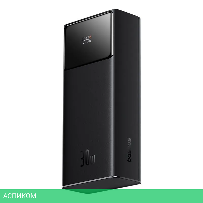 Портативное зарядное устройство Baseus Star-Lord Digital Display Cluster Black (P10022905113-00)/30000mAh/30W/PD/QC3.0/FCP/AFC/SCP/3A/USB Type-A/USB Type-C/пластик/черный