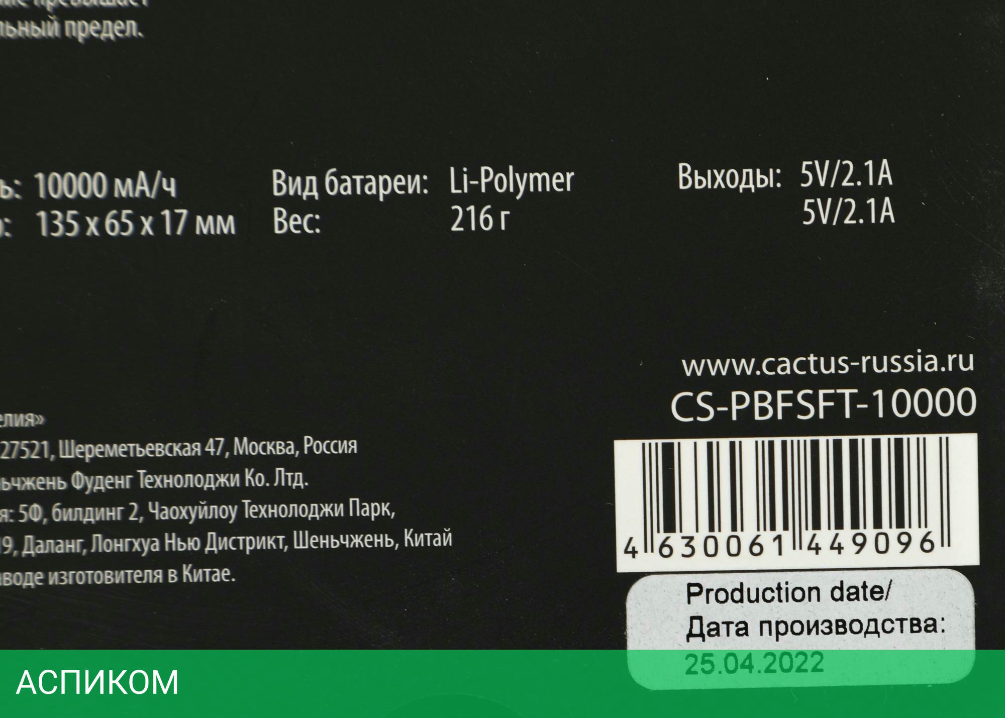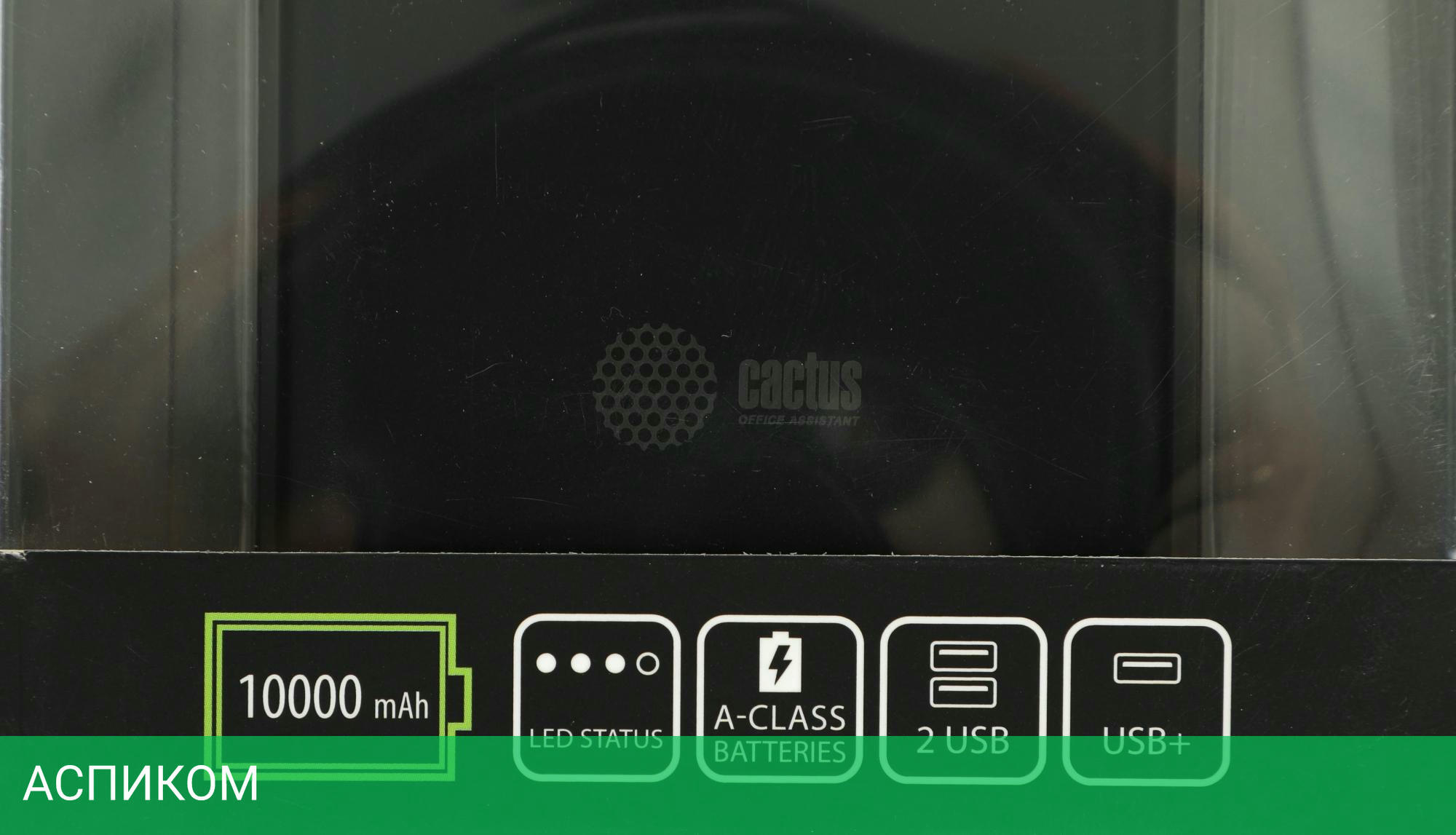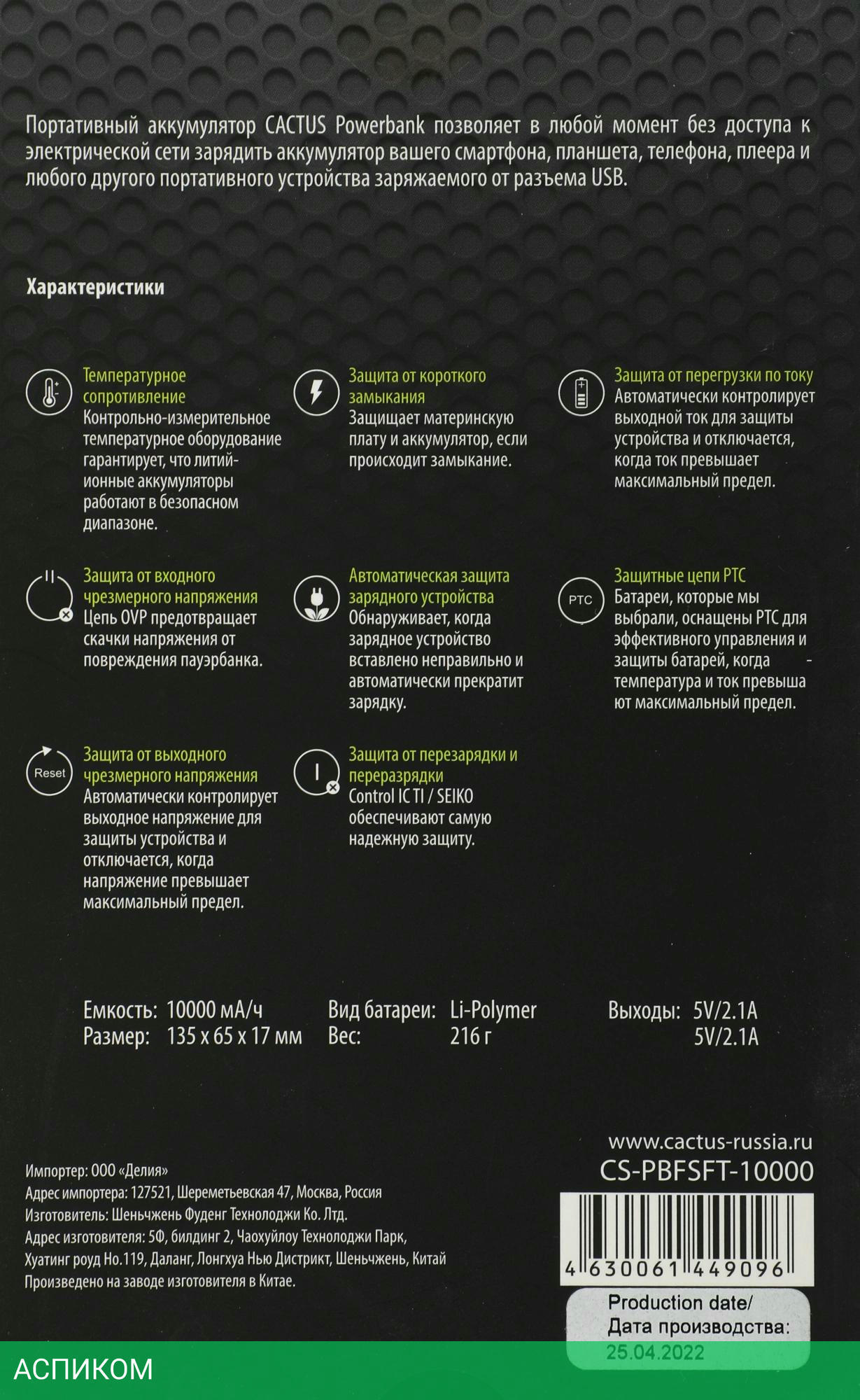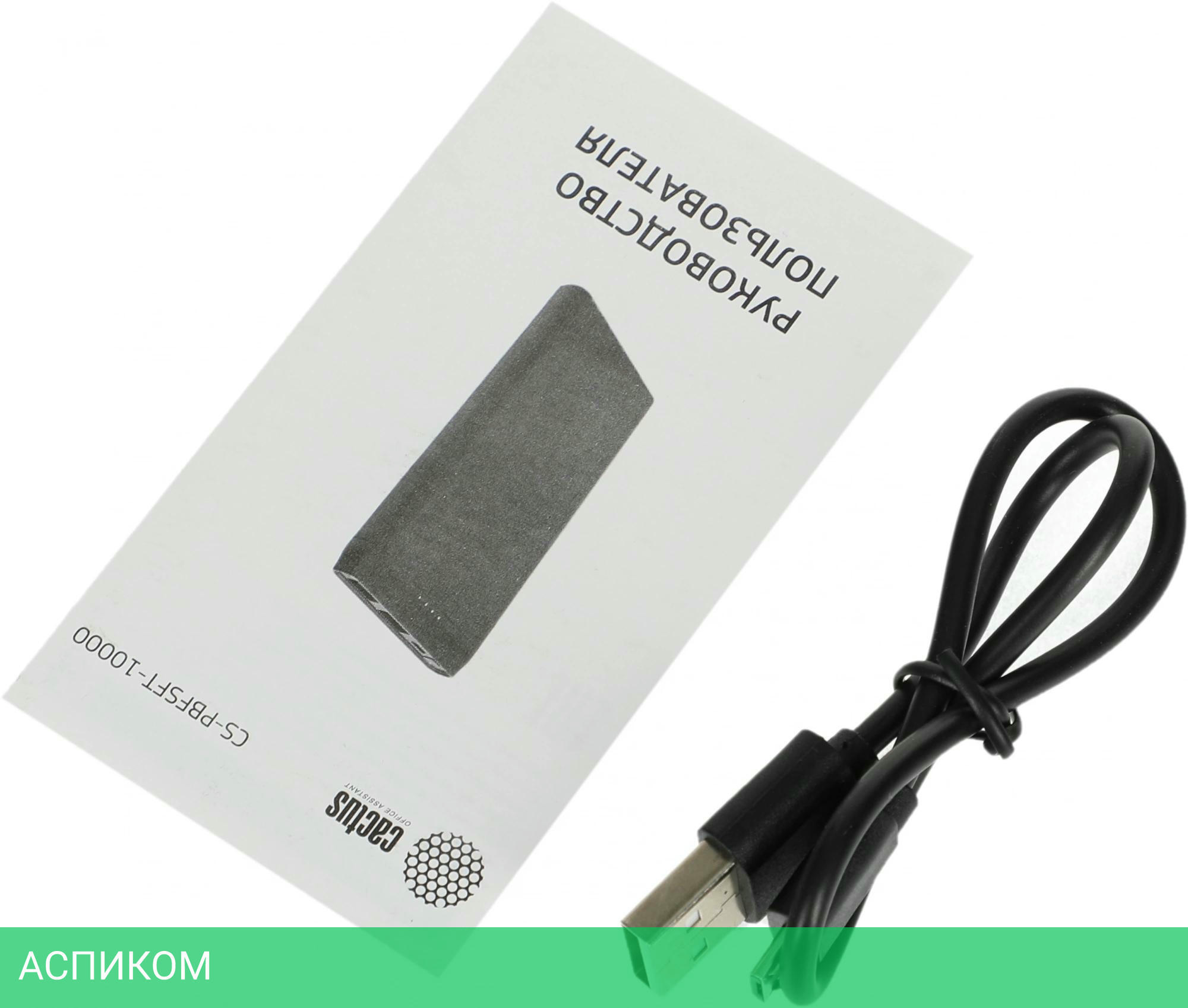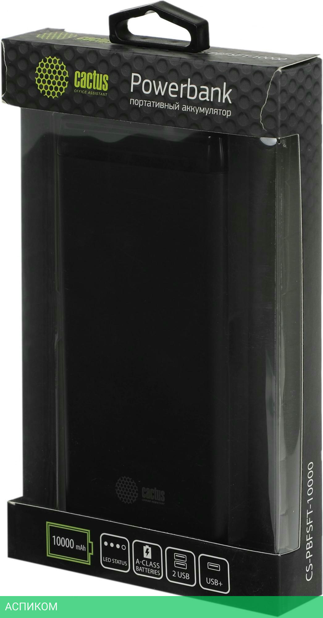 Портативное зарядное устройство Cactus CS-PBFSFT-10000 черный/10000mAh/10.5W/2.1A/USB Type-A/USB Type-C/пластик/черный