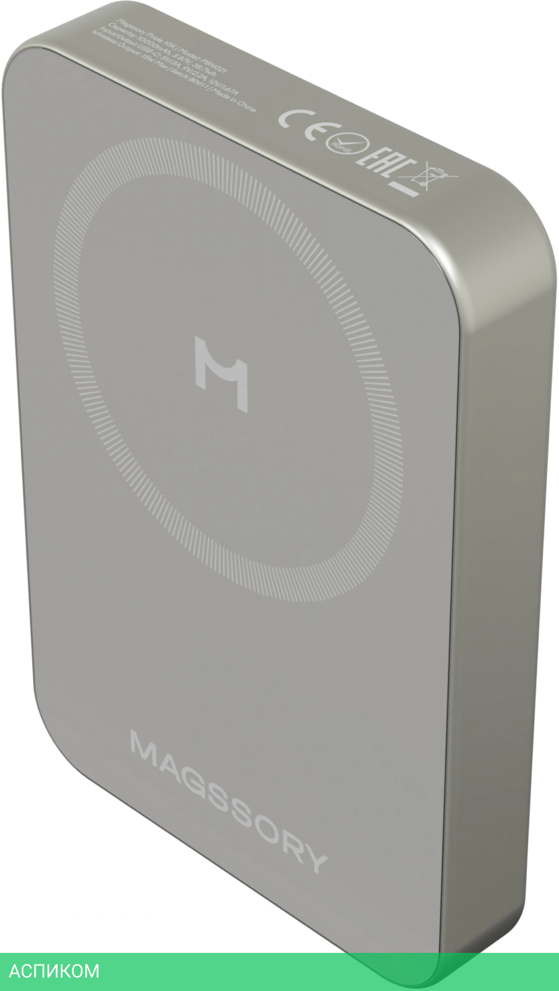 Портативное зарядное устройство Magssory Pride титан (PBN021)/10000mAh/15W/PD/QC 4.0/3A/USB Type-C/алюминий, стекло/серебристый