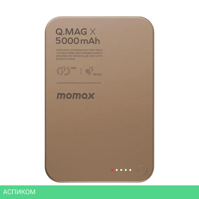 Портативное зарядное устройство Momax IP116AL2 Q.Mag X Sandstone (IP116AL2)/5000mAh/PD/PPS/QC3.0/FCP/SCP/2.22A/USB Type-C/алюминий, стекло/бежевый
