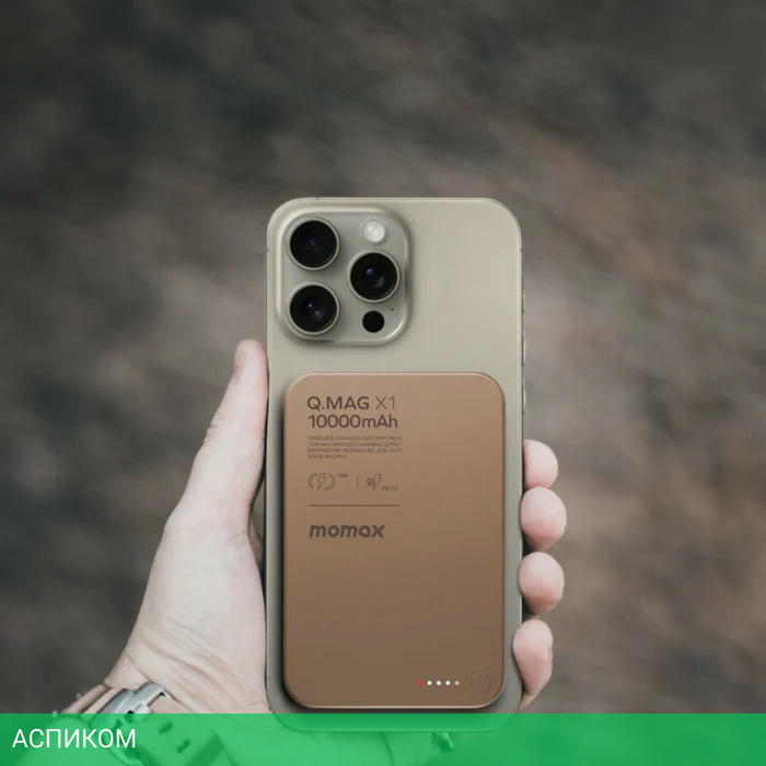 Портативное зарядное устройство Momax IP117A Q.Mag X1 Sandstone (IP117AL2)/10000mAh/PD/2.4A/USB Type-C/алюминий, стекло/бежевый