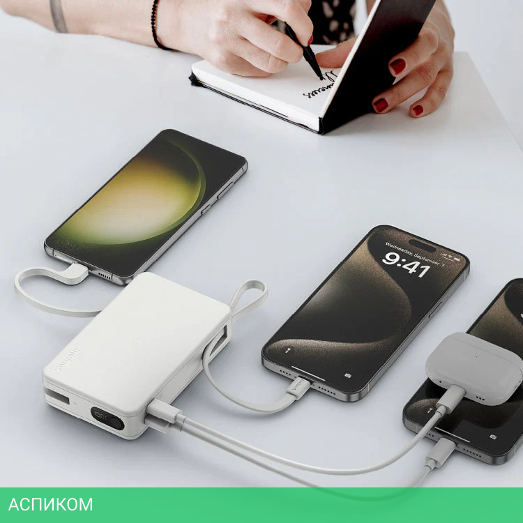 cовместимость: - все устройства USB-C: Apple iPhone 15 и 16 серий, iPad 2022 года или более поздней версии, зарядный чехол AirPods MagSafe, смартфоны Android, планшеты, беспроводные наушники, игровые портативные устройства, носимые устройства и Nintendo Switch; - ноутбук Mac (MacBook Air); - ноутбук с Windows