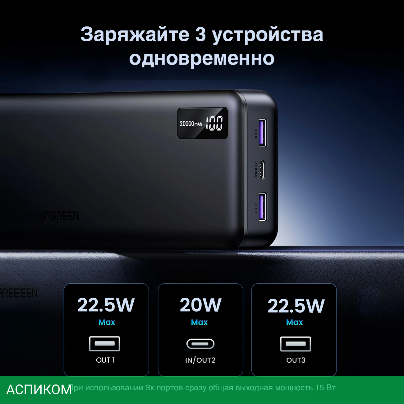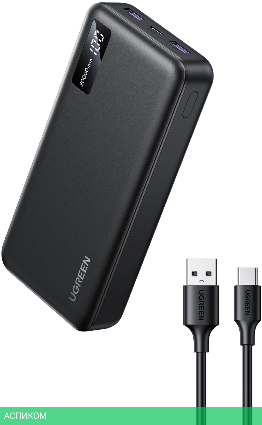 Портативное зарядное устройство Ugreen PB312 Gray (25683)/пластик/серый
