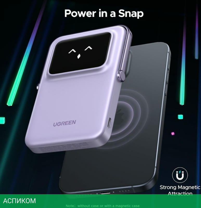 Портативное зарядное устройство Ugreen PB571 Purple (35606)/5000mAh/20W/PD/3A/USB Type-C/пластик/фиолетовый