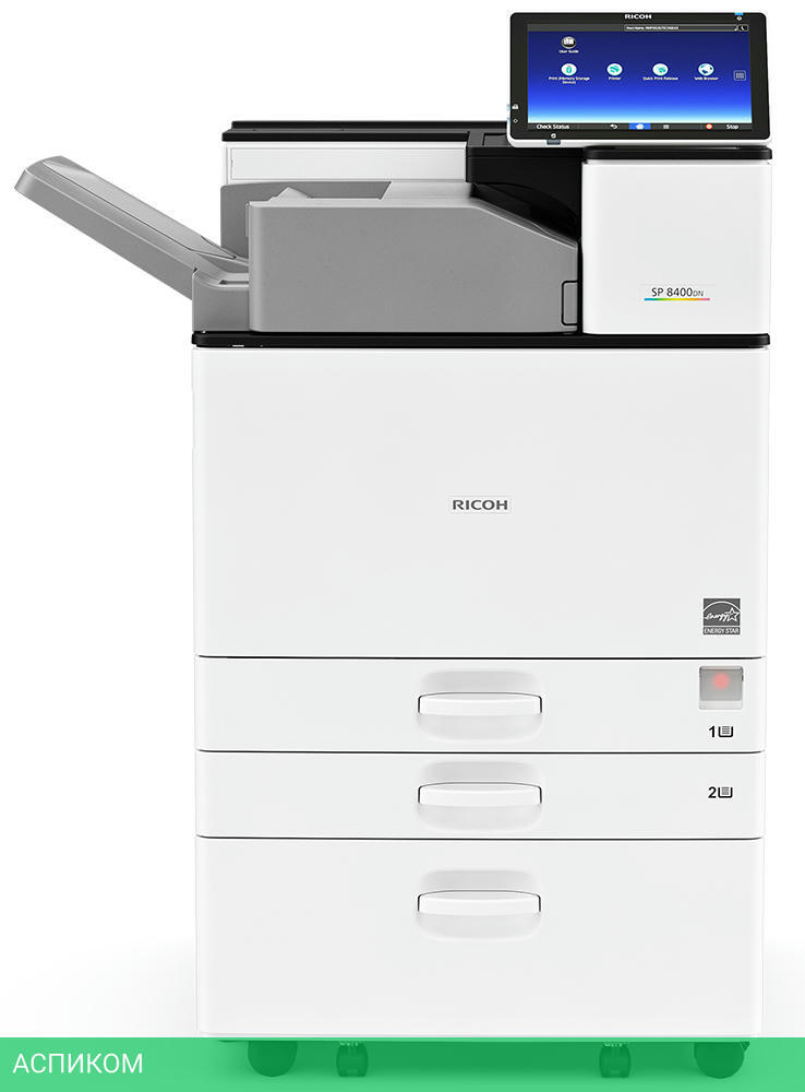Принтер Ricoh SP 8400DN (408064)/лазерный/черно-белый/A4 (210x297 мм)/60стр/мин (ч/б)/1200 x 1200 dpi/Duplex/белый/серый