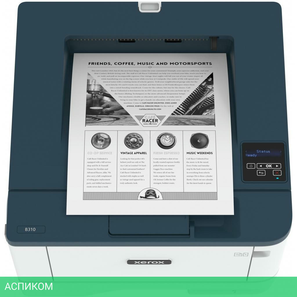 Принтер Xerox B310V_DNI/лазерный/черно-белый/A4 (210x297 мм)/40стр/мин (ч/б)/1200 x 1200 dpi/Duplex/Wi-Fi/белый/синий