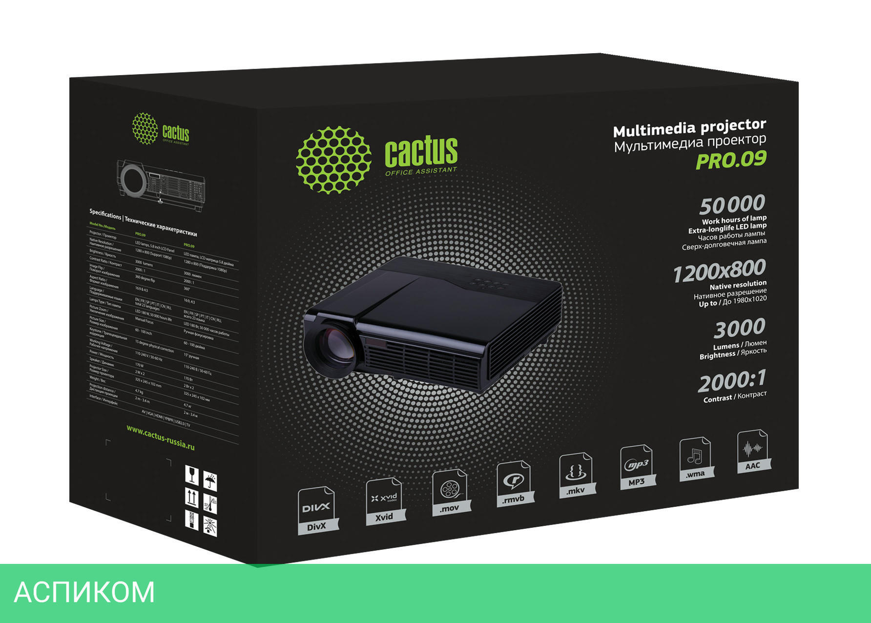 презентационный / лампа / LCD / WXGA (1280x720) / черный / 16:9 / 3000.0 / 2 000 :1 / 60.0 / 100.0 / да / да