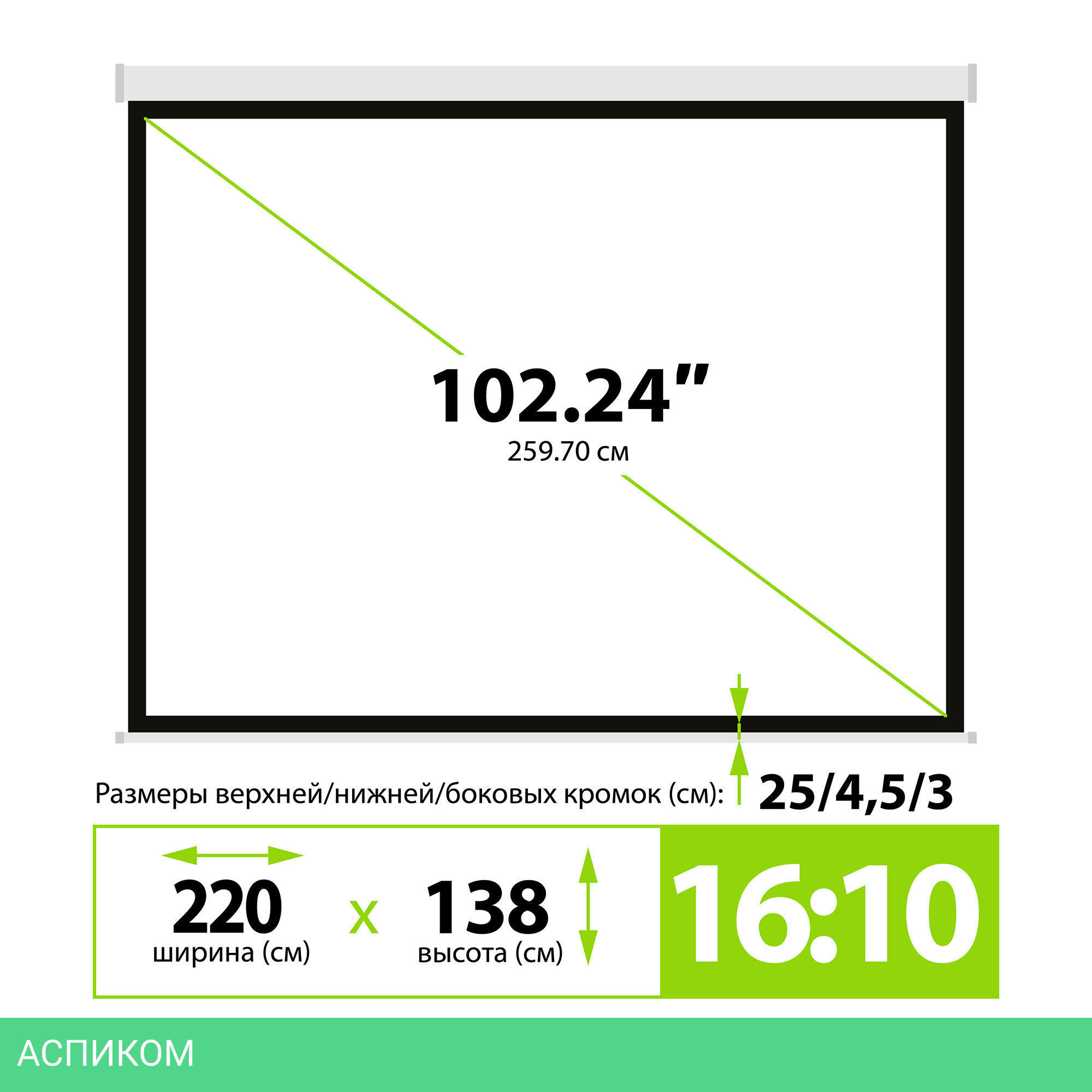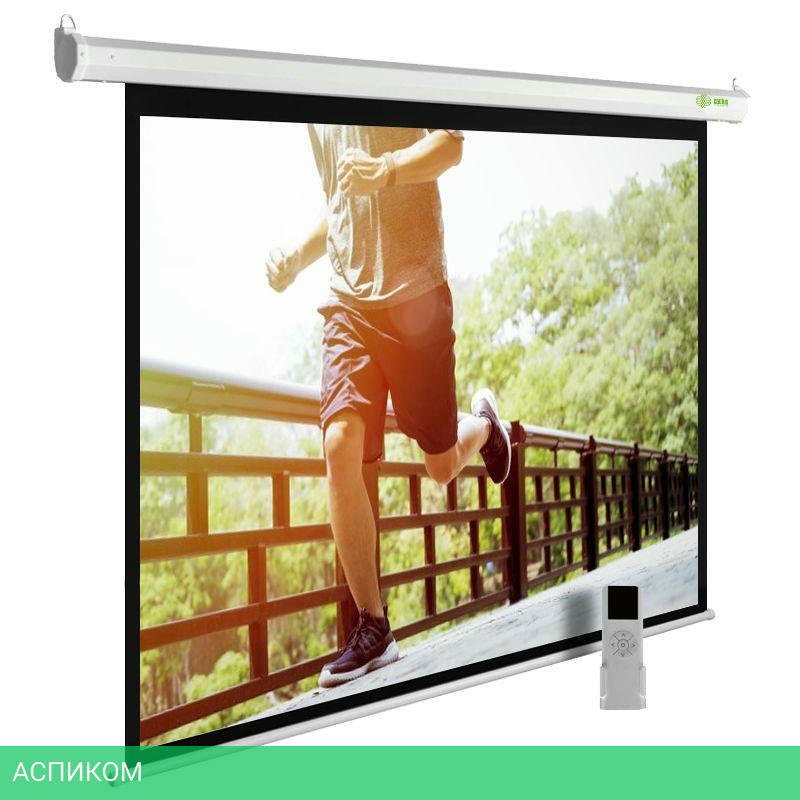 стационарный / рулонный моторизированный / потолочный; настенный / металлизированное / белый / 16:10 / 103.0 / 214.0 / 133.8