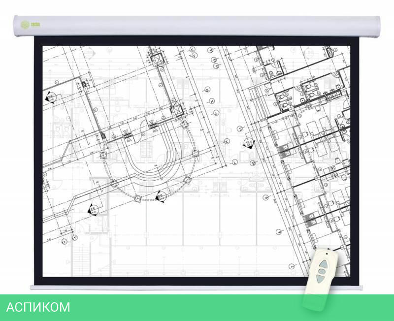 стационарный / рулонный моторизированный / настенный; потолочный / матовое белое / белый / 1:1 / 100.22 / 180.0 / 180.0