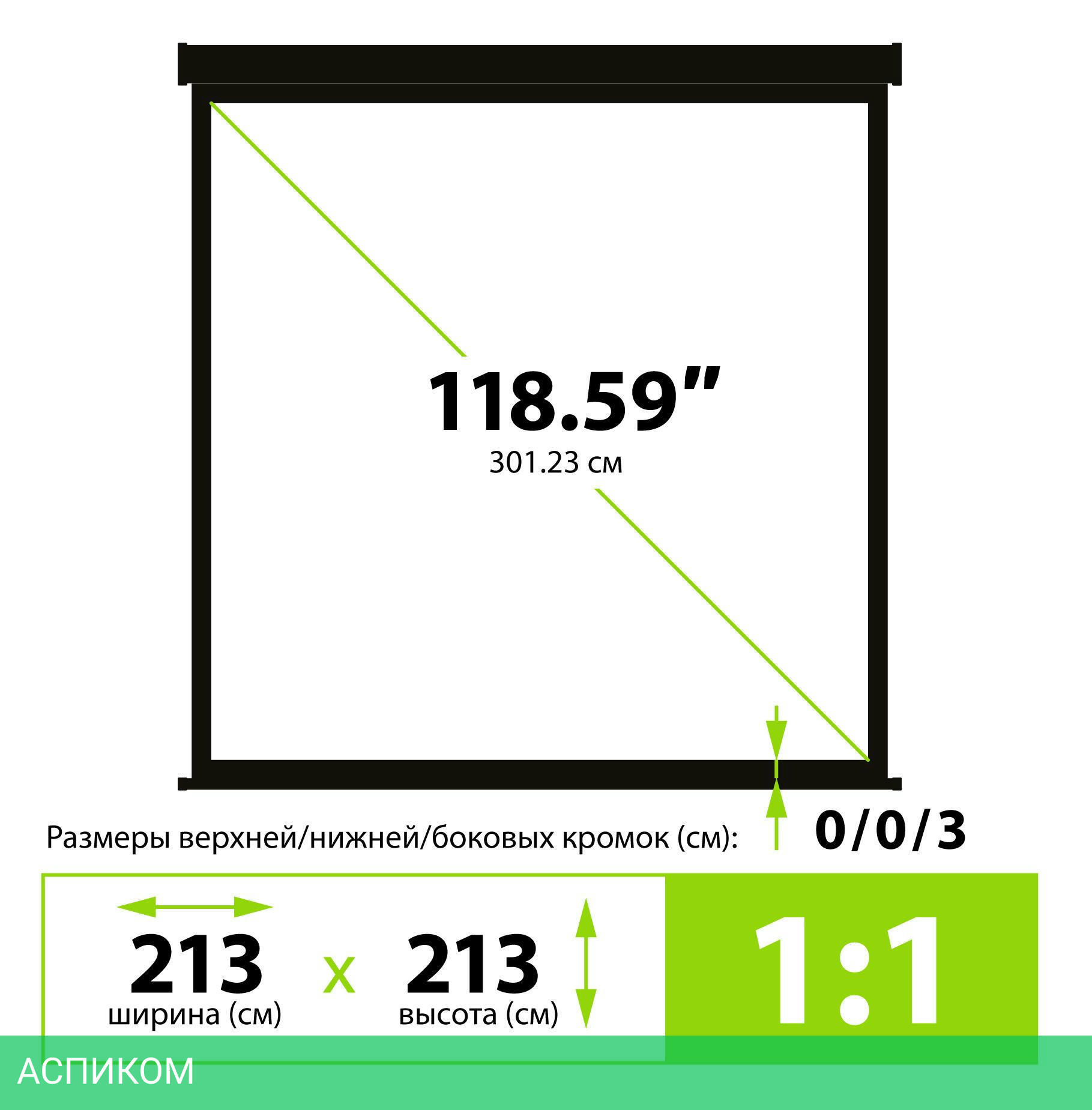 стационарный / черный / рулонный моторизированный / потолочный; настенный / матовое белое / 1:1 / 119.0 / 213.0 / 213.0