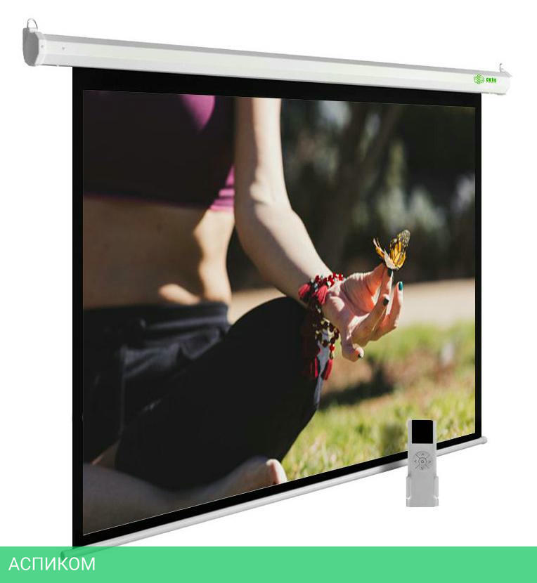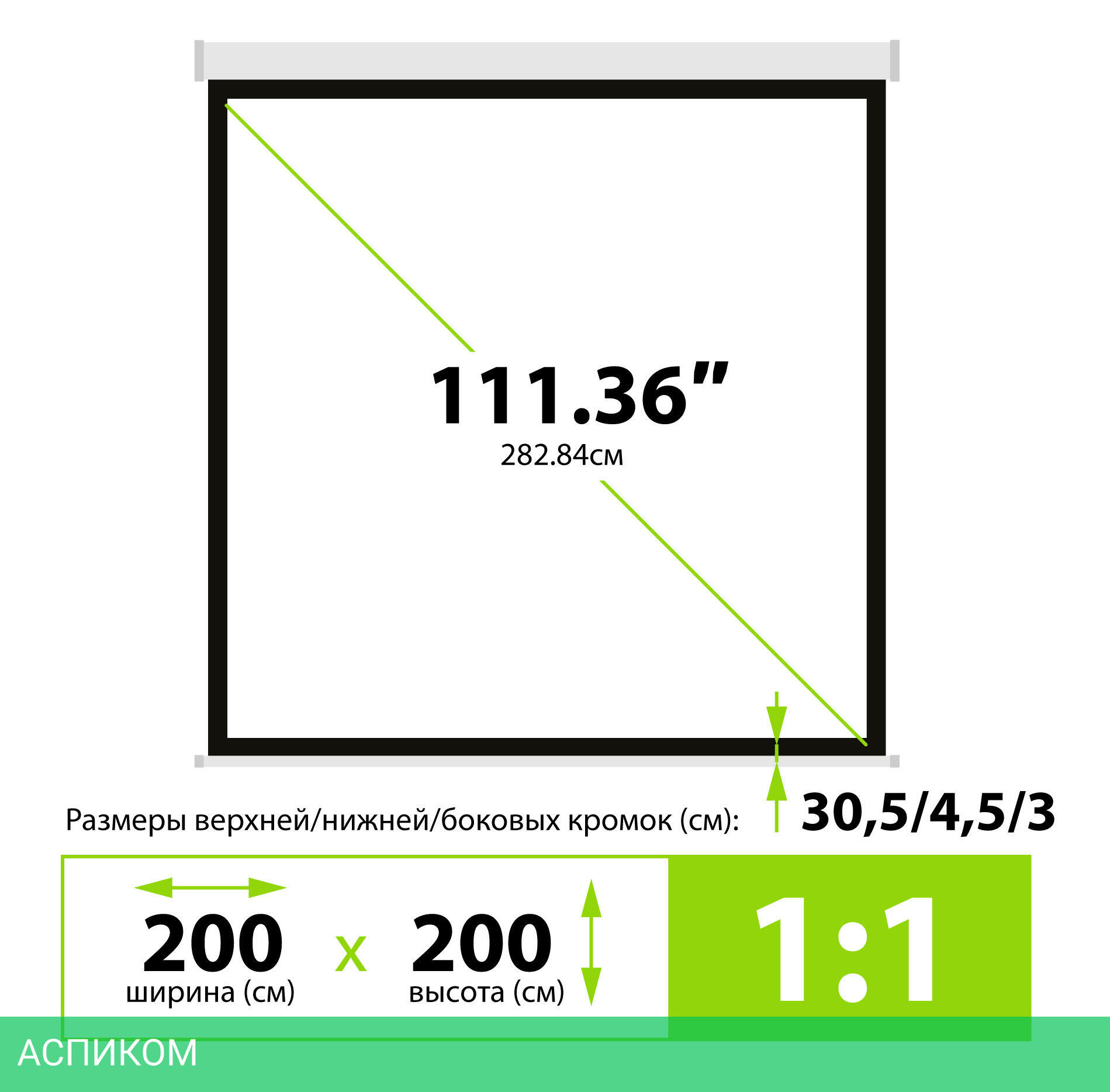 стационарный / рулонный моторизированный / потолочный; настенный / матовое белое / белый / 1:1 / 111.36 / 194.0 / 194.0