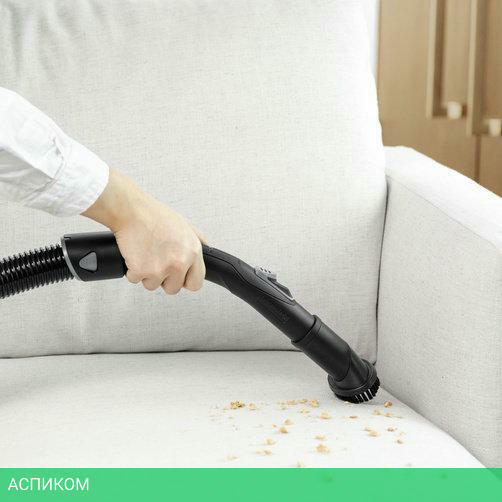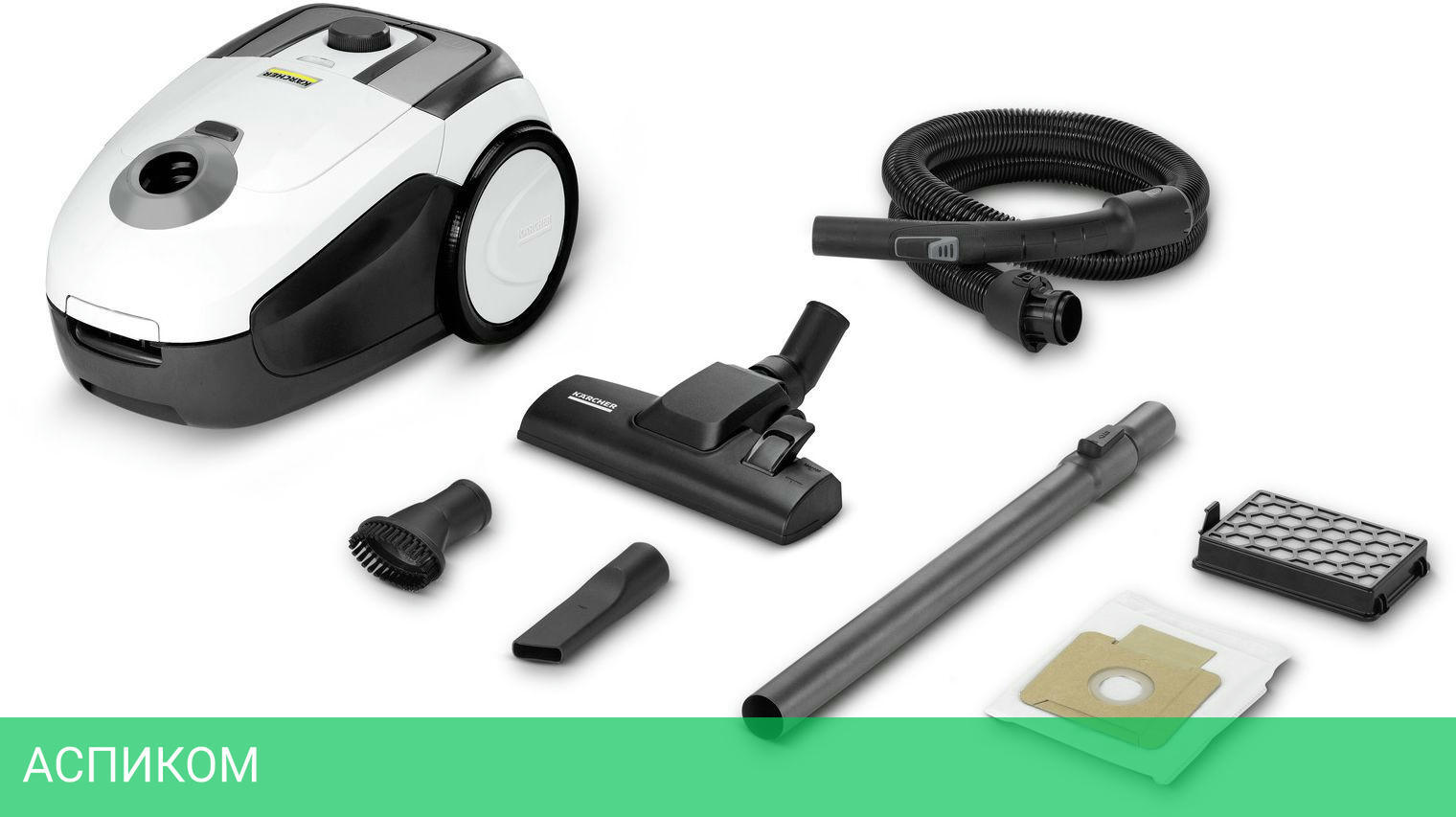 всасывающий шланг: 1.5 м, с изогнутой рукояткой, телескопическая удлинительная трубка, фильтр-мешок, фильтр HEPA 13 (EN 1822:1998), насадка для пола, щелевая насадка, щеточная насадка для мебели