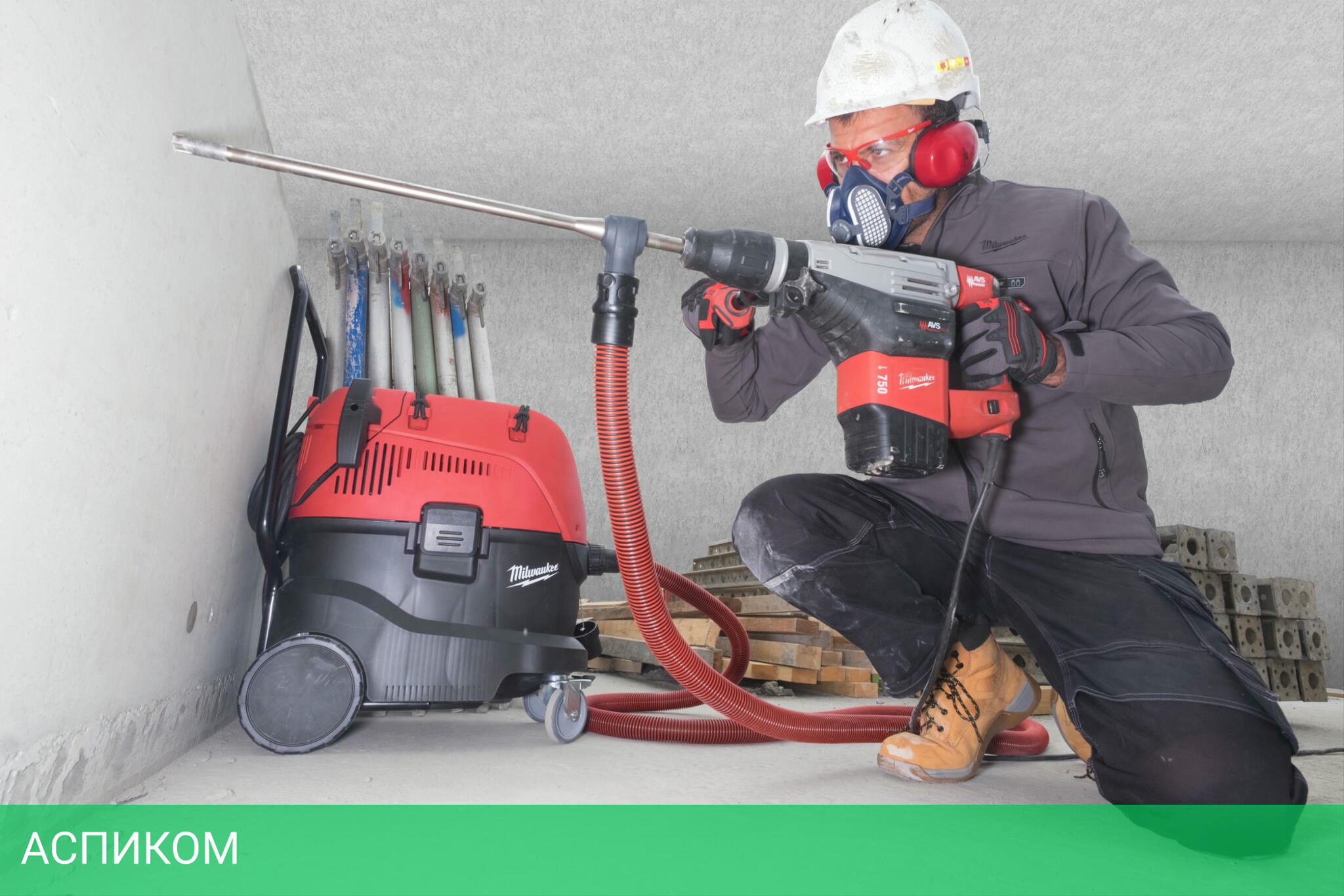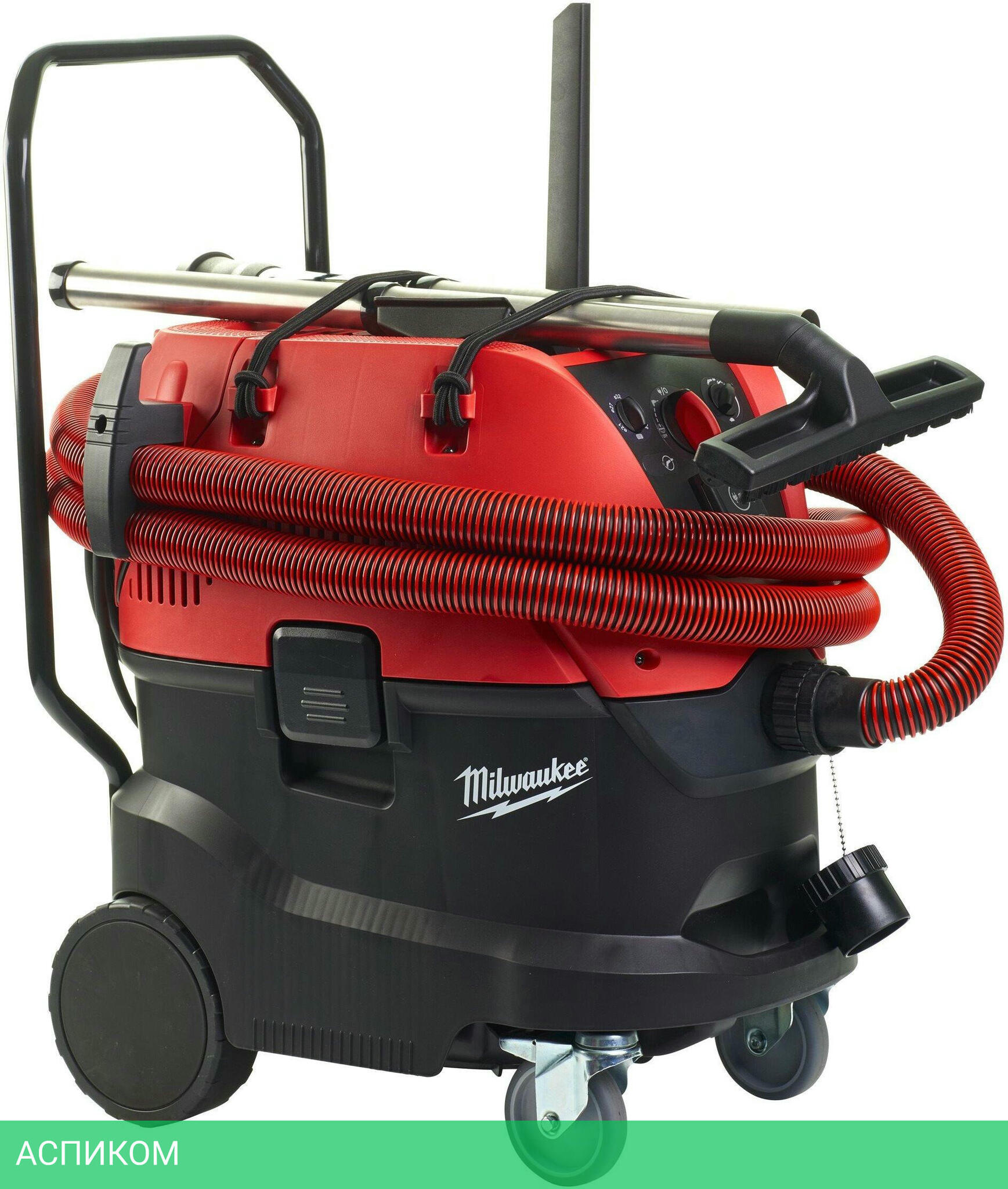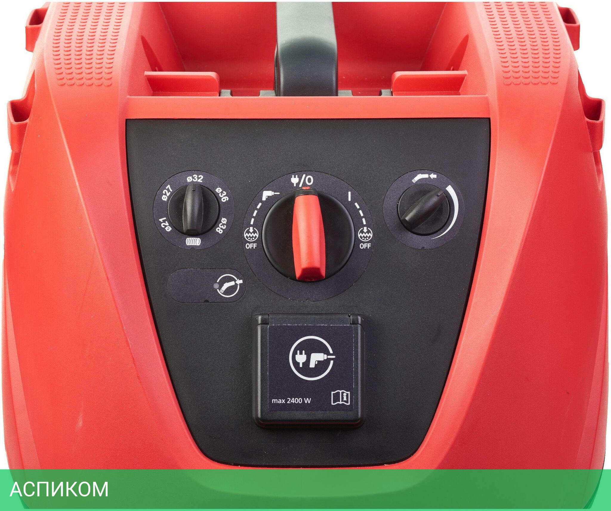 пылесос, 2 х адаптера для подключения к инструменту, трубка держатель, 2 х удлинительные трубки, щелевая и для пола насадки, флисовый фильтрующий мешок, мешок для пыли, шланг 4 м х 38 мм, рукоятка для транспортировки, инструкция, упаковка