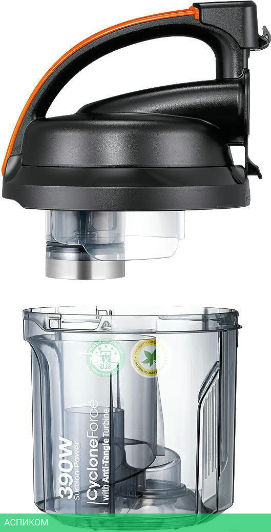 классический с контейнером / черный; оранжевый / от сети / контейнер / 390.0 / 1500.0 / 86.0 / сталь / на корпусе / нет