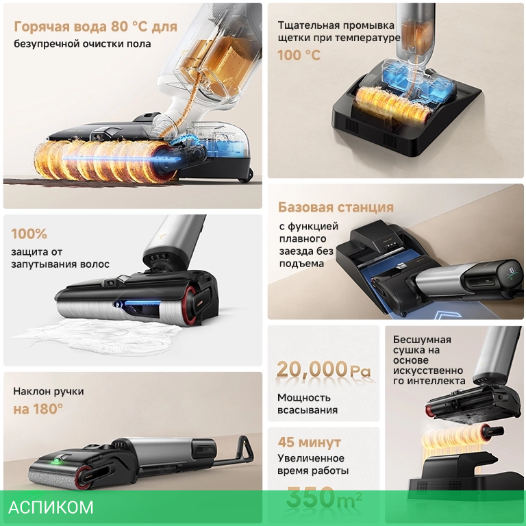 щетка для чистки, док-станция, запасной фильтр, запасная роликовая щетка, чистящий раствор, руководство пользователя