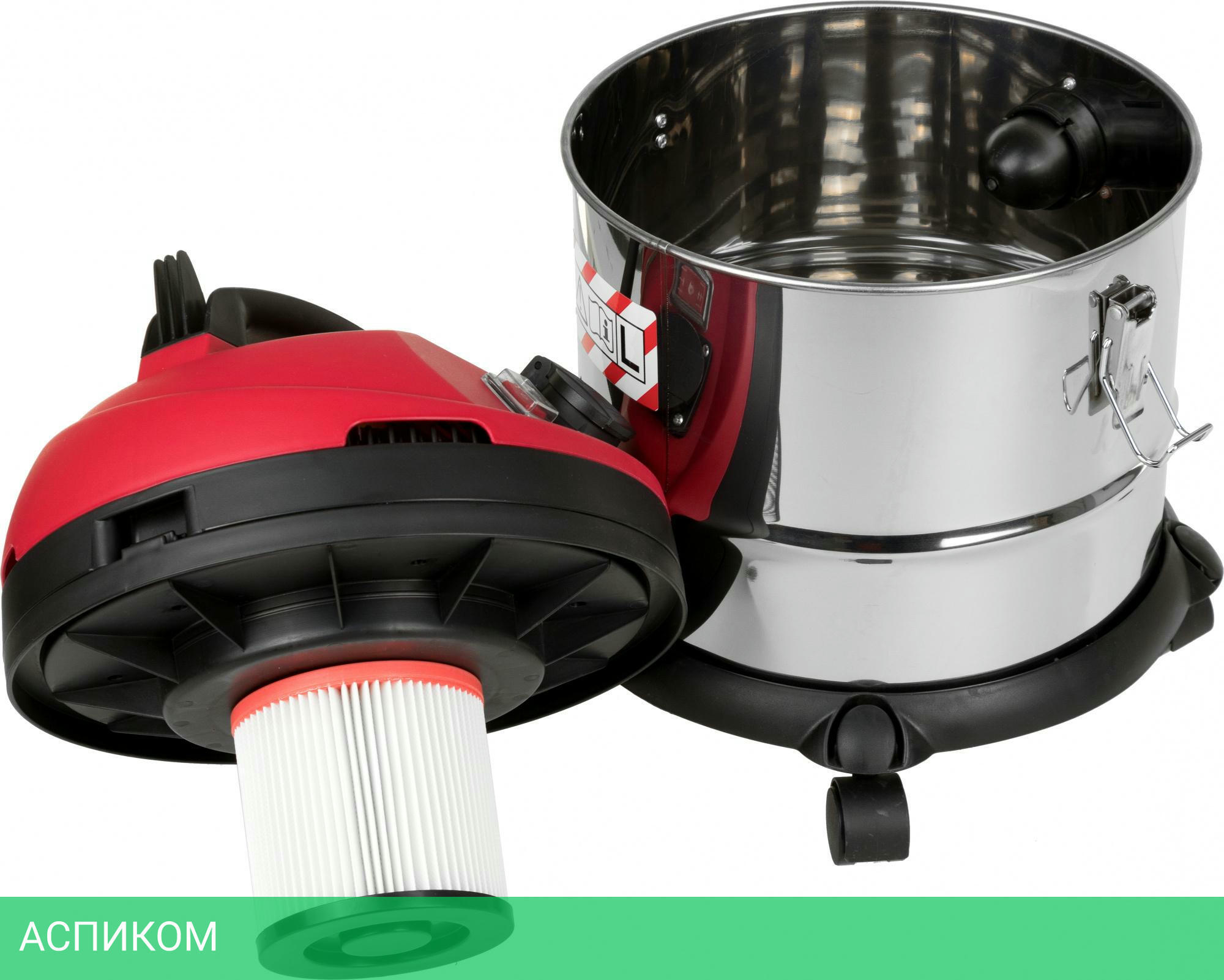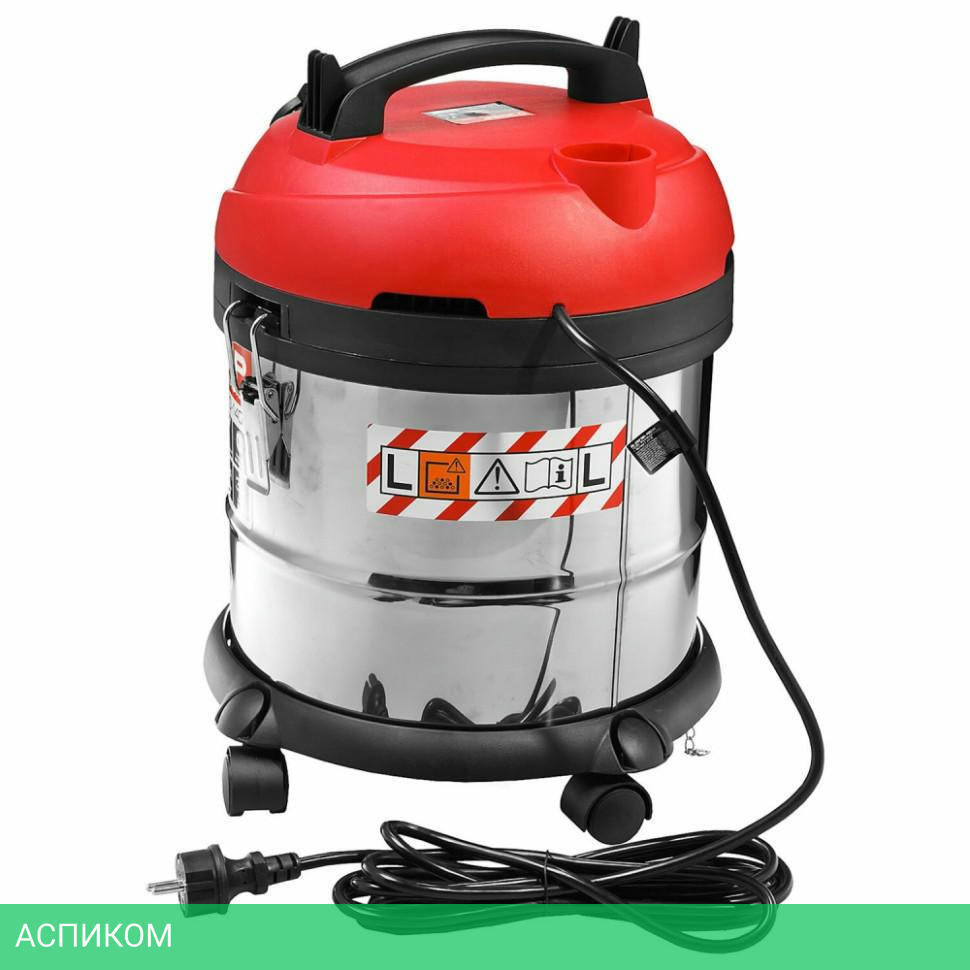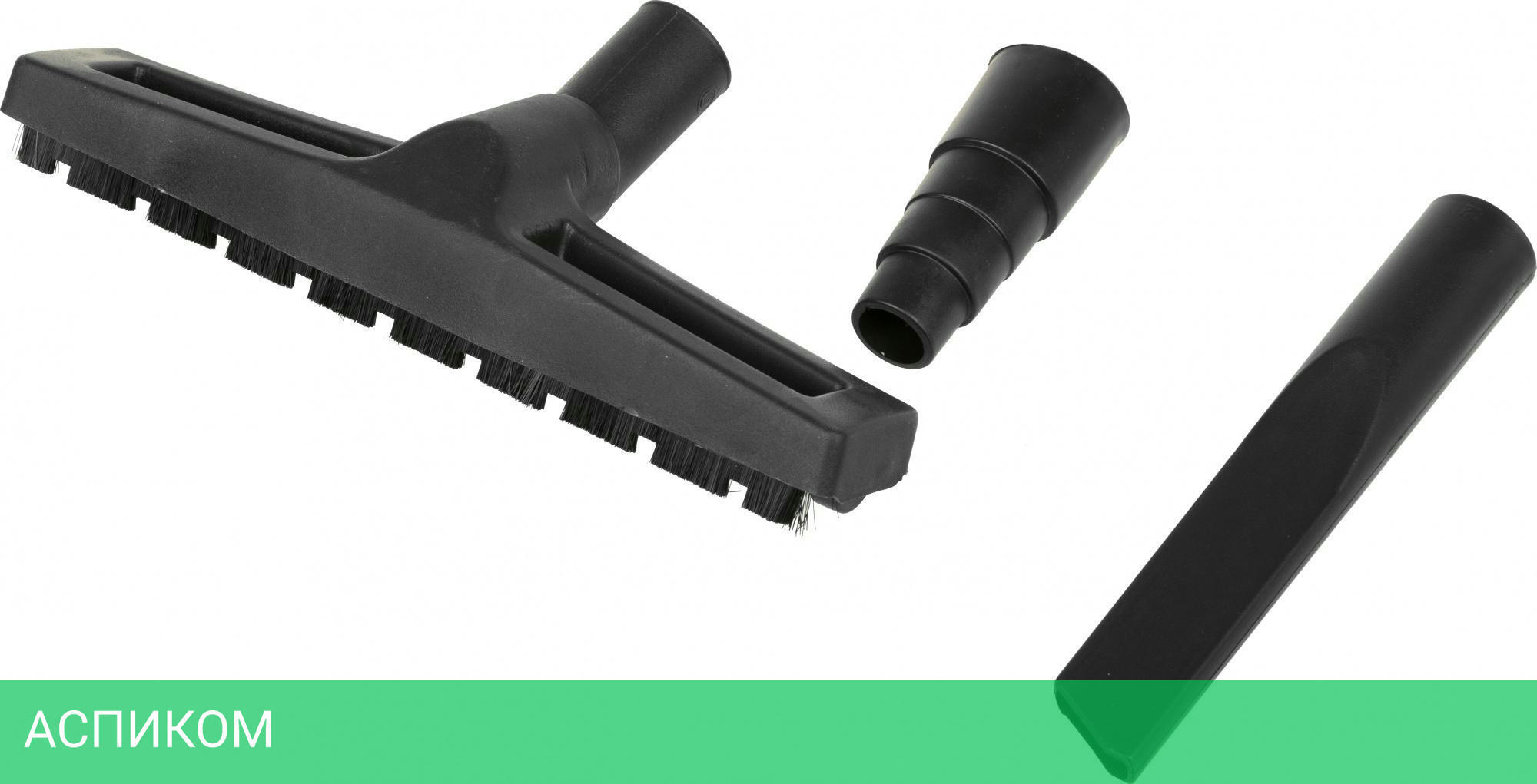Пылесос,Бумажный одноразовый мешок,Тканевый мешок,Фильтр тонкой очистки HEPA,Фильтр для влажной уборки,Крепежный набор,Колеса, Насадка щелевая,Патрубок-переходник, Насадка универсальная,Пластиковый гофрошланг (3 м),Трубка составная