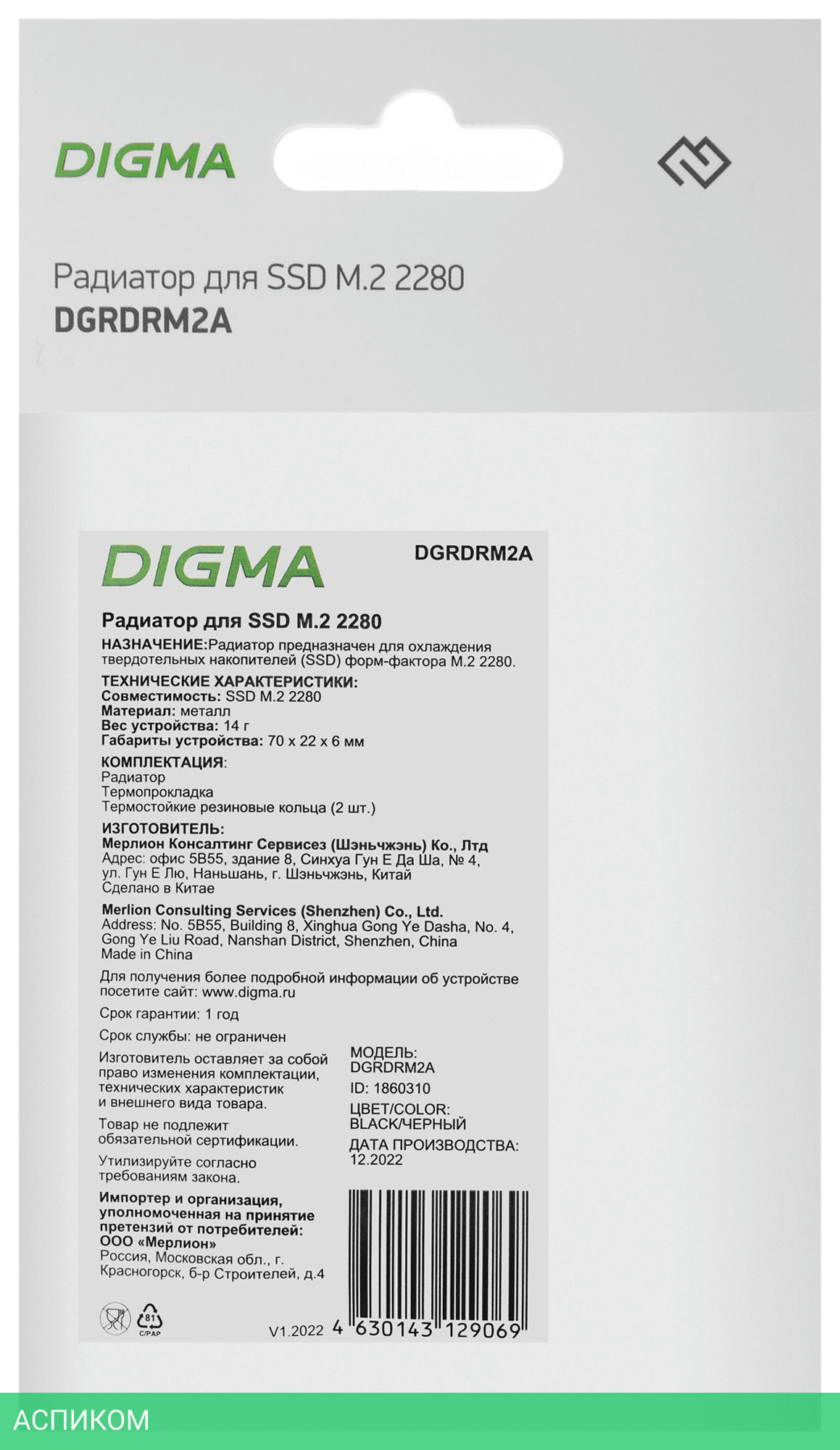 радиатор / 10.0 / для SSD / черный / пассивное / металл / 0.6