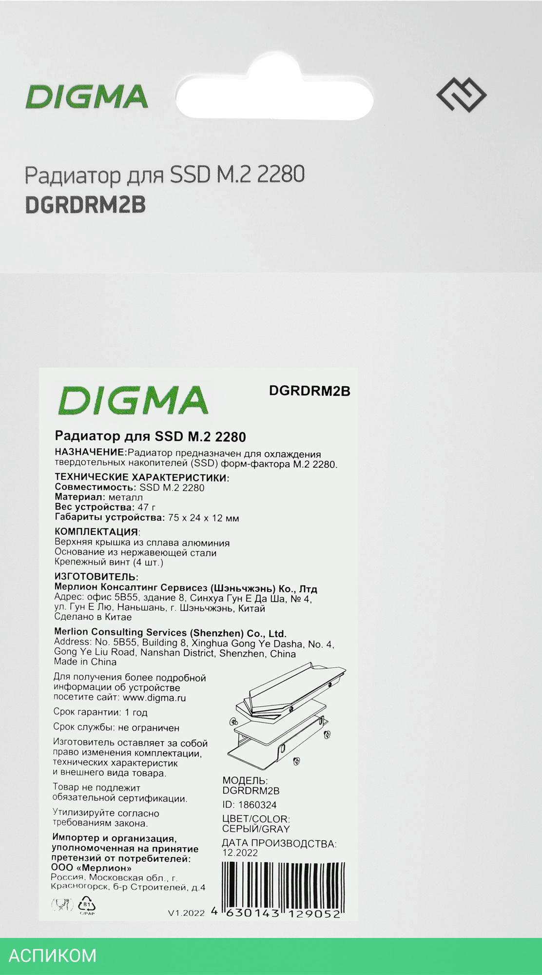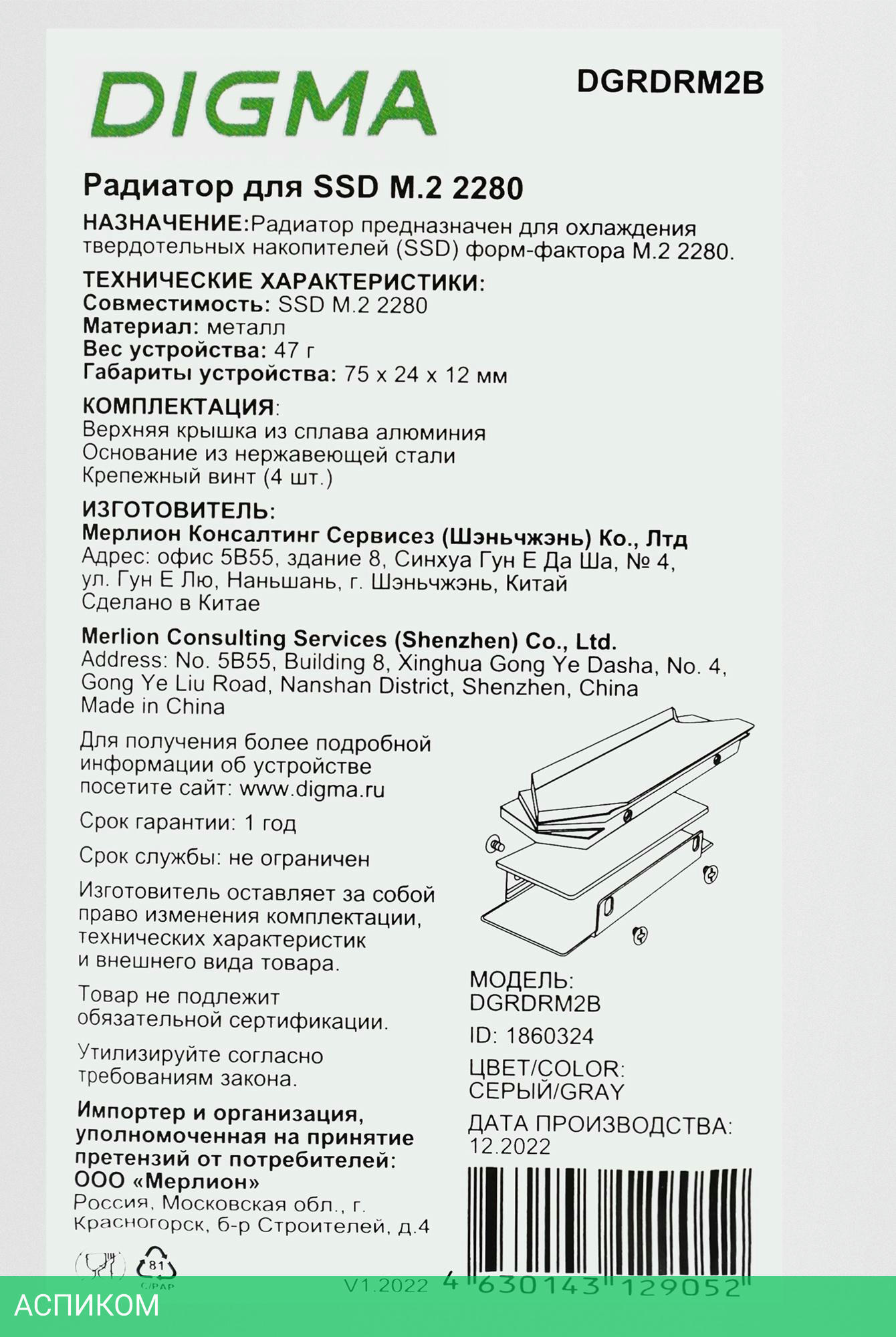 радиатор / для SSD / черный / металл / нет / 1.2