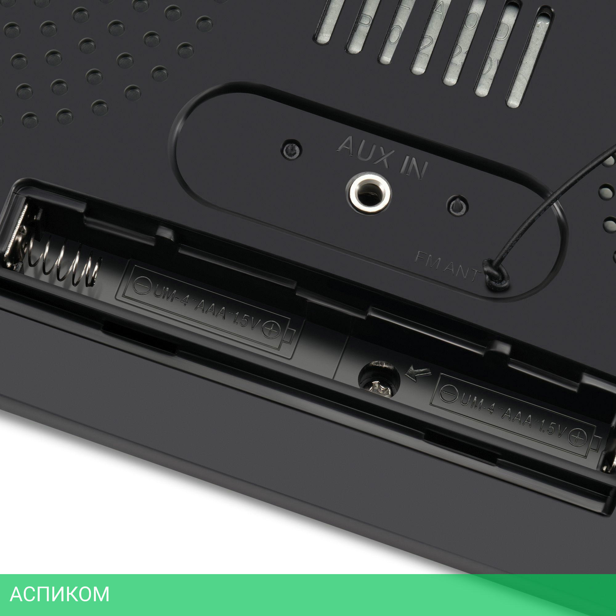 радиобудильник / переносной / цифровой / FM / ЖК / да / цифровые / да / нет / нет / нет / черный