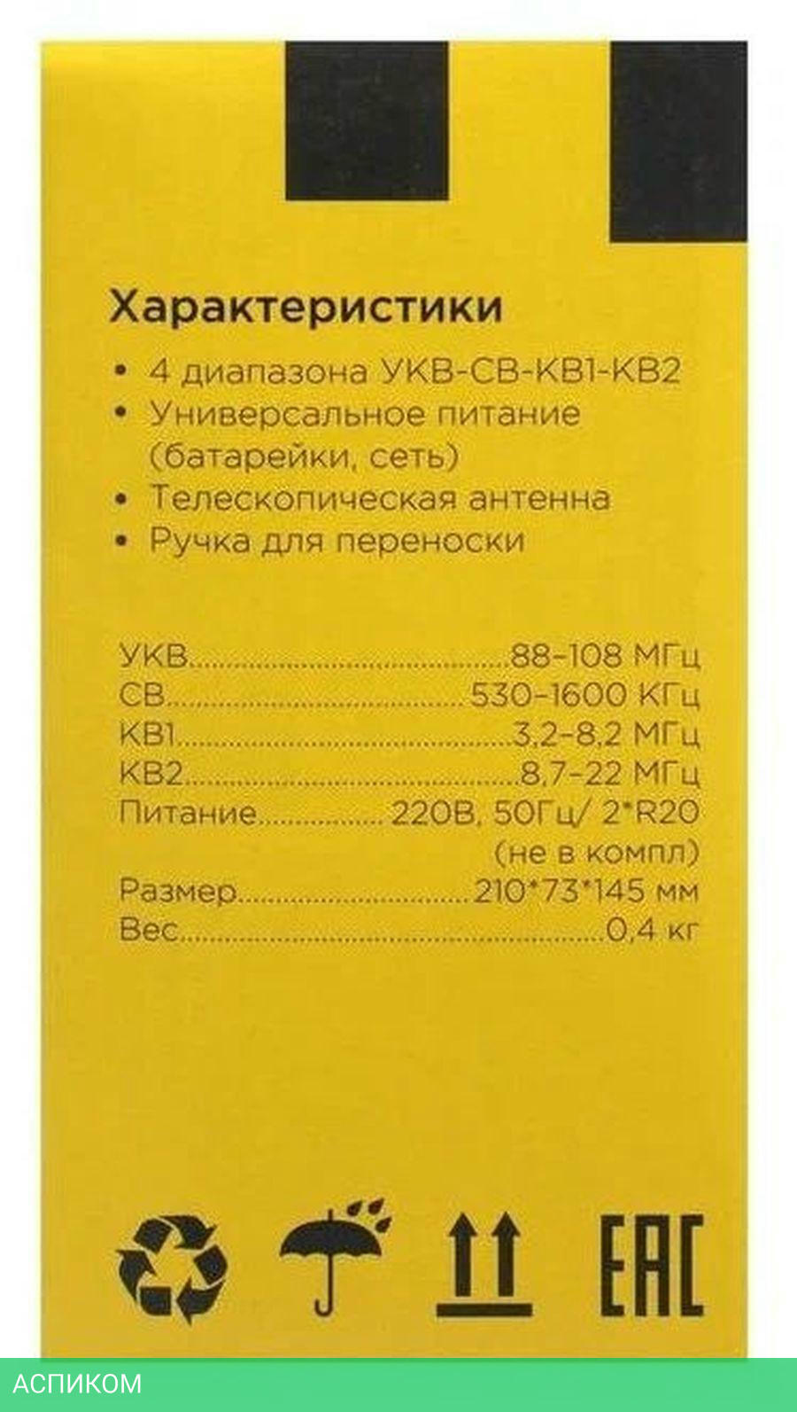 радиоприемник / переносной / аналоговый / FM / черный / 3 / нет / нет / да / нет / нет / нет / нет / нет / от сети